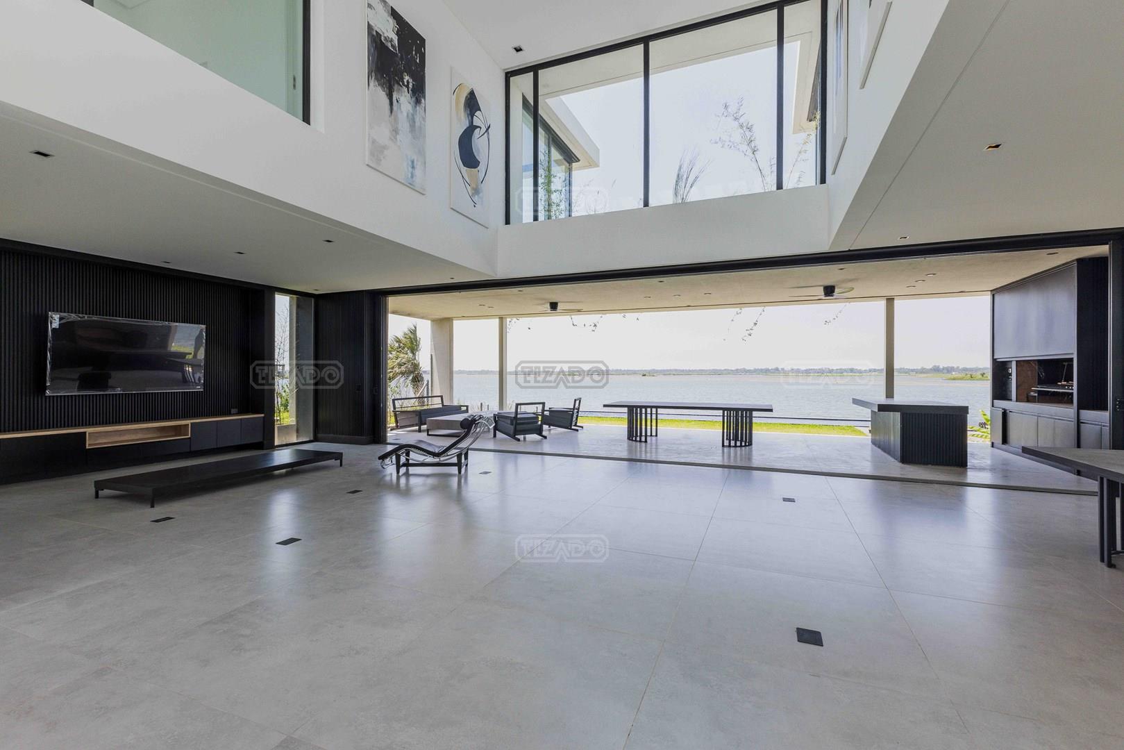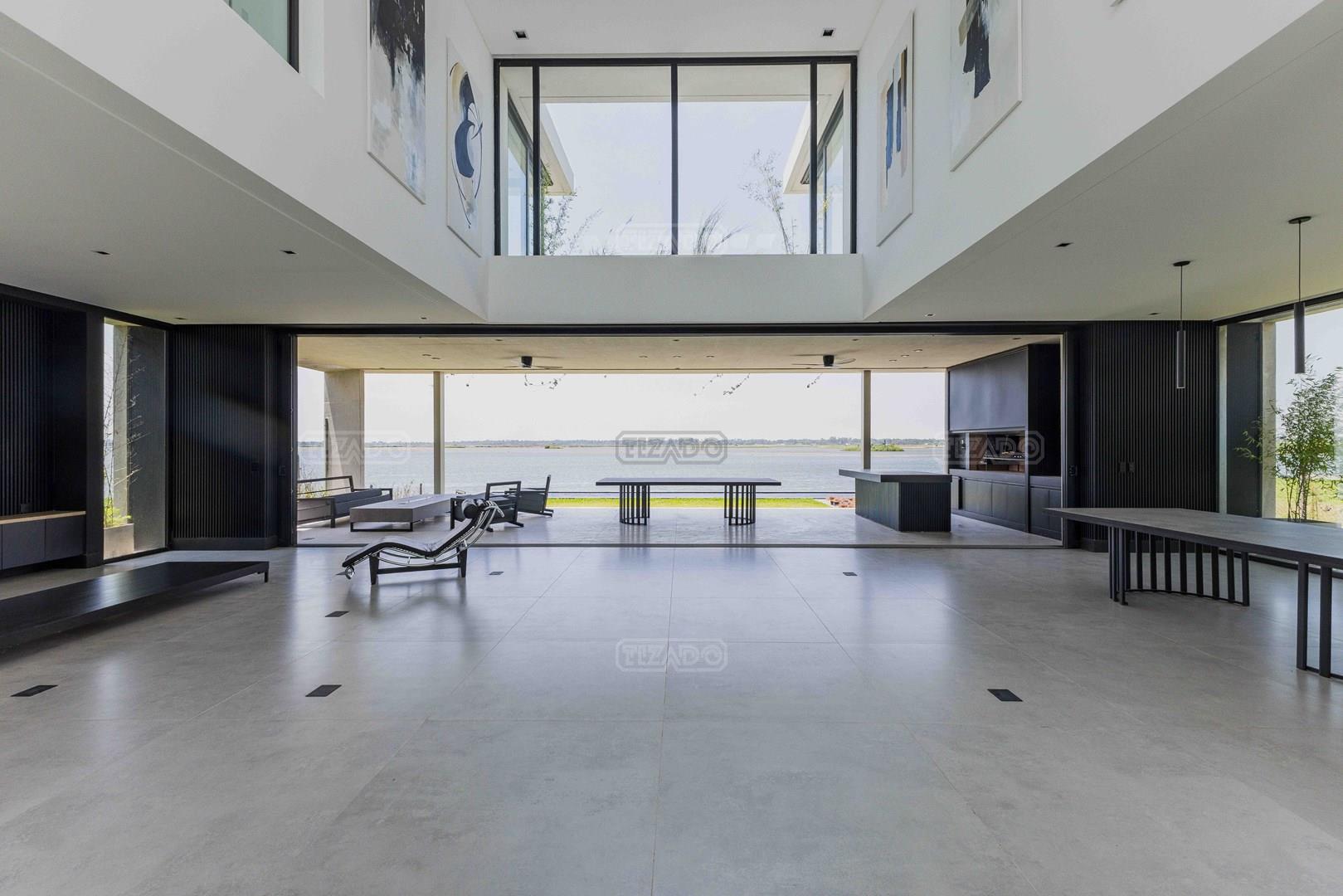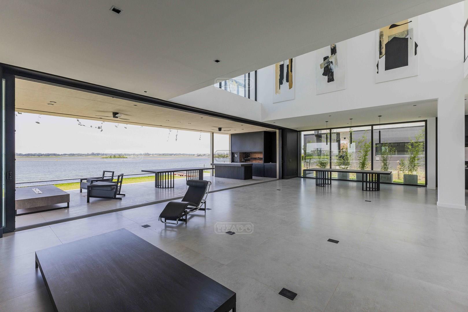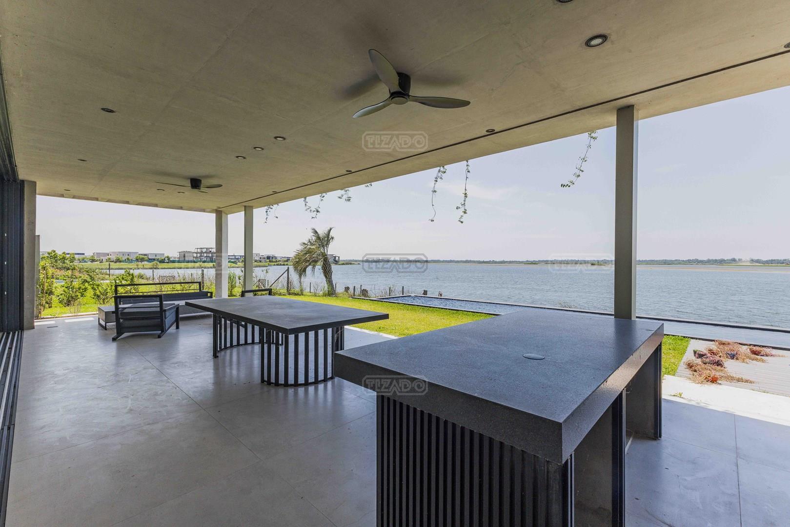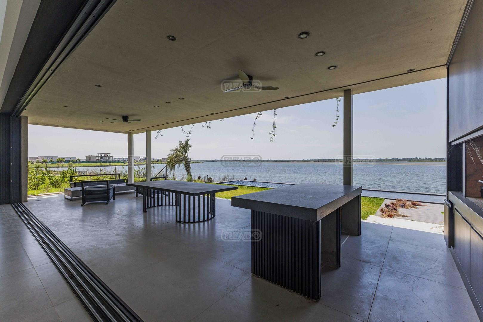 La casa propone una llegada escénica: hall vidriado, estanque y puerta de 7 m con la laguna en primer plano. Un area social (Living y comedor ) con 12.7 m de abertura total hacia galería con sector parrilla con gran isla, y el sector sala de estar con fogonero. Cocina de autor con isla. En PB: dormitorio suite y escritorio en suite, bodega y toilette. Lavadero inteligente con tender automático y Laundry Jet. En PA: playroom y 2º escritorio; 3 suites (dos con terraza) y master con terraza a la laguna, vestidor con luz natural y baño spa con doble ducha y sauna. Afuera, pileta con borde infinito y playa húmeda (12,70 × 3,40), baño y ducha exteriores, jardín con riego e iluminación. Cochera cubierta x2 y espacio guardacoches para 4 vehiculos mas. Operación: Venta Tipo: Casa Ubicación: Marinas – Puertos, Escobar (GBA Norte) Ambientes: 7 o más Dormitorios: 5 (en suite) Baños: 6 + toilette + baño exterior de pileta Cocheras: 2 cubiertas , 4 descubiertas Disposición: Fondo a laguna central con vista infinita Pileta: Sí (infinita + playa húmeda) Terraza/Balcón: Sí (cada dormitorio cuenta con su terraza propia) Calefacción/Climatización: Losa a gas, A/A (varios), domótica Dependencia en suite PB Escritorio en suite PB A estrenar Amenities del barrio: Seguridad 24hs, lagunas navegables, naútica, club deportivo, polo gastronomico y comercial, escuelas y rapido acceso a ruta 25 y a Panamericana. KM45 Detalles constructivos Open Concept. Abierto hacia la galería con aberturas empotradas y sin columnas 12.70 mts de vista abierta hacia la laguna. Sala de máquinas. Galeria con losa radiante Aberturas de PVC de aluminio negro con DVH. Instalacion Domotica. Piso: Laminas de Porcelanato color Gris hueso de 1,60mts x 1,60mts Muebles hechos con melamina Egger importada de Suiza. Herrajes importados. Accesorios de muebles de cocina importados. 2 hornos eléctricos ARISTON empotrables 1 horno microondas AEG alemán Bacha de cocina de acero negro importada automatica ultima generacion Isla y mesada en marmol con anafe de 90 cmts de 6 hornallas y extractor extraible automatico Artefactos de iluminación de última tecnología. Parrilla, horno, mesacada con bacha importada con canilla embutida Playa al lago 2 Calderas BAXI LUNA para calefacción . 1 termotanque alta recuperación 160 lts. Bomba Grundfos . 2 colectores de losa radiante. Computadora y sistema de riego automático Hunter/Raindeer Estructura de Hormigón H30. Vigas de hormigón H30. Columnas de hormigón H30. Tabiques de Hormigón Visto H30. Altura a cielo raso : 3 mts Altura a cielo raso Living 1 :doble altura 7 mts. Coordiná recorrido ahora: la mejor vista de Marinas te está esperando. The house offers a dramatic arrival: a glazed hall, reflecting pond, and a 7-meter glass door framing the lagoon. Social area (living & dining): a total opening of 12.7 m to the covered gallery—BBQ/grill zone with a large island—and a lounge area with a fire pit. Signature kitchen with island. Ground floor: en-suite bedroom and an en-suite office, wine cellar, and powder room. Smart laundry with automatic drying rack and Laundry Jet. Upper floor: playroom and a second office; 3 suites (two with private terraces) and a primary suite with terrace over the lagoon, walk-in closet with natural light, and spa bathroom with double shower and sauna. Outdoors: infinity pool with sun shelf (12.70 × 3.40 m), outdoor bathroom and shower, landscaped garden with irrigation and lighting. Two covered parking spaces plus room to park four more vehicles. Operation: Sale Property type: House Location: Marinas – Puertos, Escobar (Northern GBA) Rooms: 7 or more Bedrooms: 5 (all en-suite) Bathrooms: 6 + powder room + outdoor pool bathroom Parking: 2 covered, 4 uncovered Lot orientation: Central lagoon backline with unobstructed view Pool: Yes (infinity + sun shelf) Terraces/Balconies: Yes (each bedroom has its own terrace) Heating/AC: Gas radiant slab heating, multiple A/C units, home automation Service quarters: En-suite on ground floor Office: En-suite office on ground floor Condition: Brand-new Neighborhood amenities: 24/7 security, navigable lagoons, nautical activities, sports club, dining & retail hub, schools, and quick access to Route 25 and Pan-American Highway (Km 45) Construction details Open concept. Seamless connection to the gallery with recessed, column-free openings and 12.70 m of unobstructed lagoon view. Mechanical room. Gallery with radiant floor heating. Black aluminum/PVC double-glazed windows (DVH). Home automation system. Flooring: 160 × 160 cm bone-gray porcelain slabs. Cabinetry: custom, with Egger laminated boards (imported). Imported hardware and kitchen accessories. Appliances: two built-in ARISTON electric ovens; one AEG microwave (German). Kitchen sink: imported black steel, latest-generation with automatic features. Counters & island: marble; 90 cm cooktop with 6 burners and automatic retractable downdraft extractor. Lighting: state-of-the-art fixtures. Outdoor kitchen (gallery): built-in grill, oven, countertop with imported sink and recessed faucet. Lakefront “beach” access. Heating & hot water: two BAXI LUNA boilers (heating) + 160 L high-recovery water heater. Pump: Grundfos. Radiant system: two manifold collectors. Irrigation: controller and automatic system Hunter/Rain Bird. Structure: reinforced concrete H30 (beams, columns, exposed concrete walls). Ceiling heights: 3 m standard; double-height living at 7 m. Schedule a private tour now—Marinas’ finest view is waiting for you.