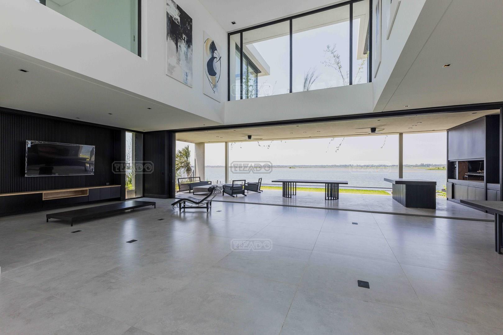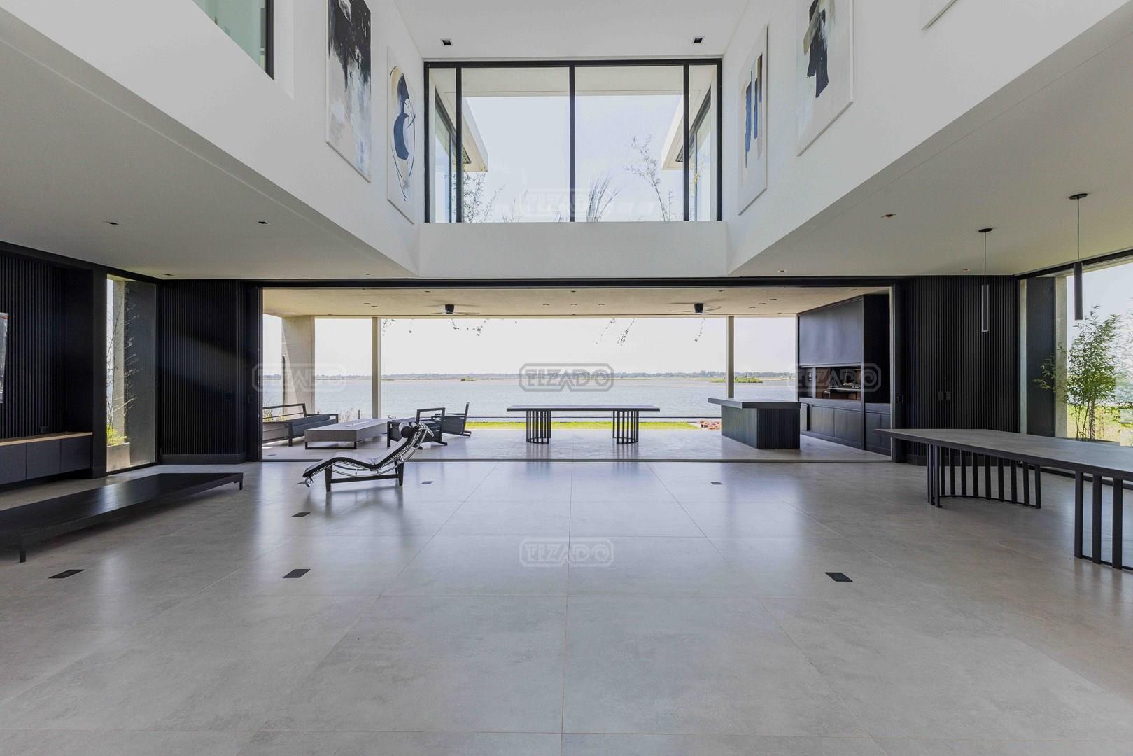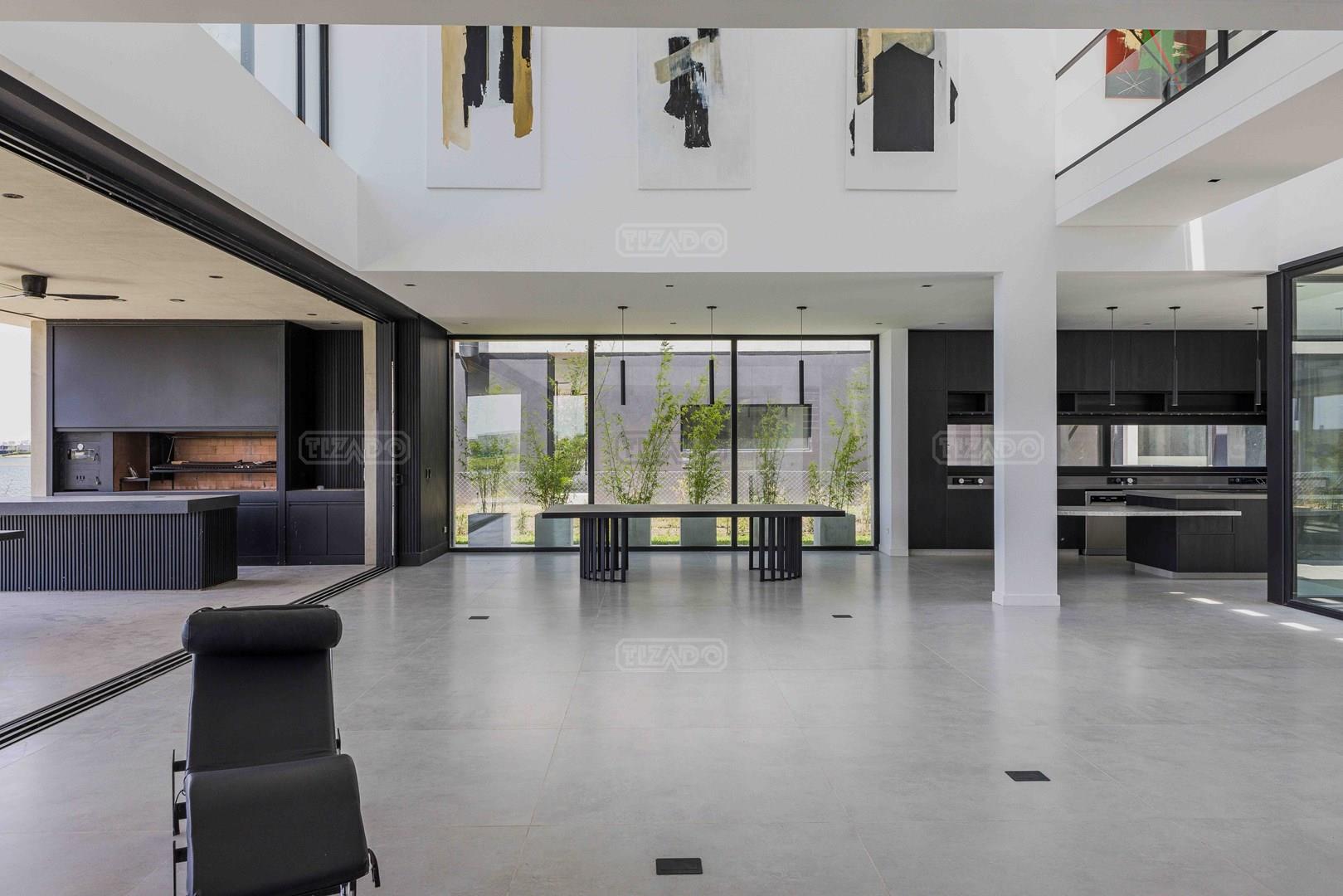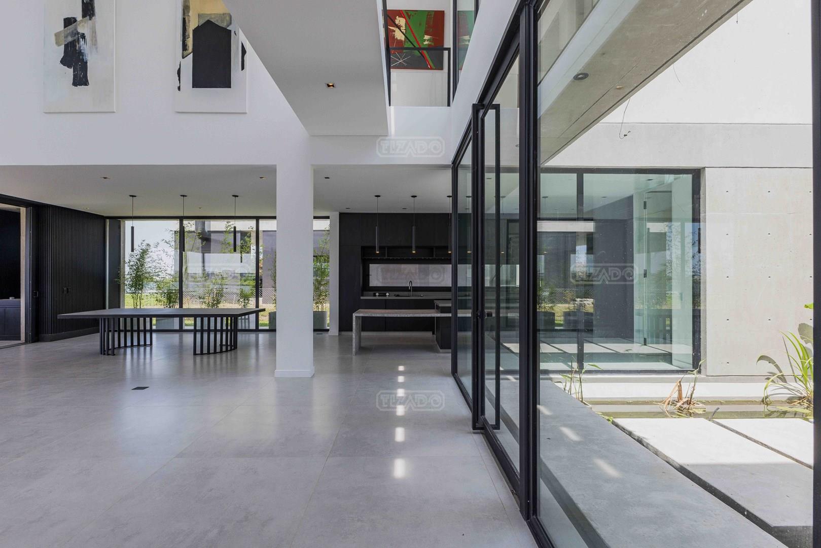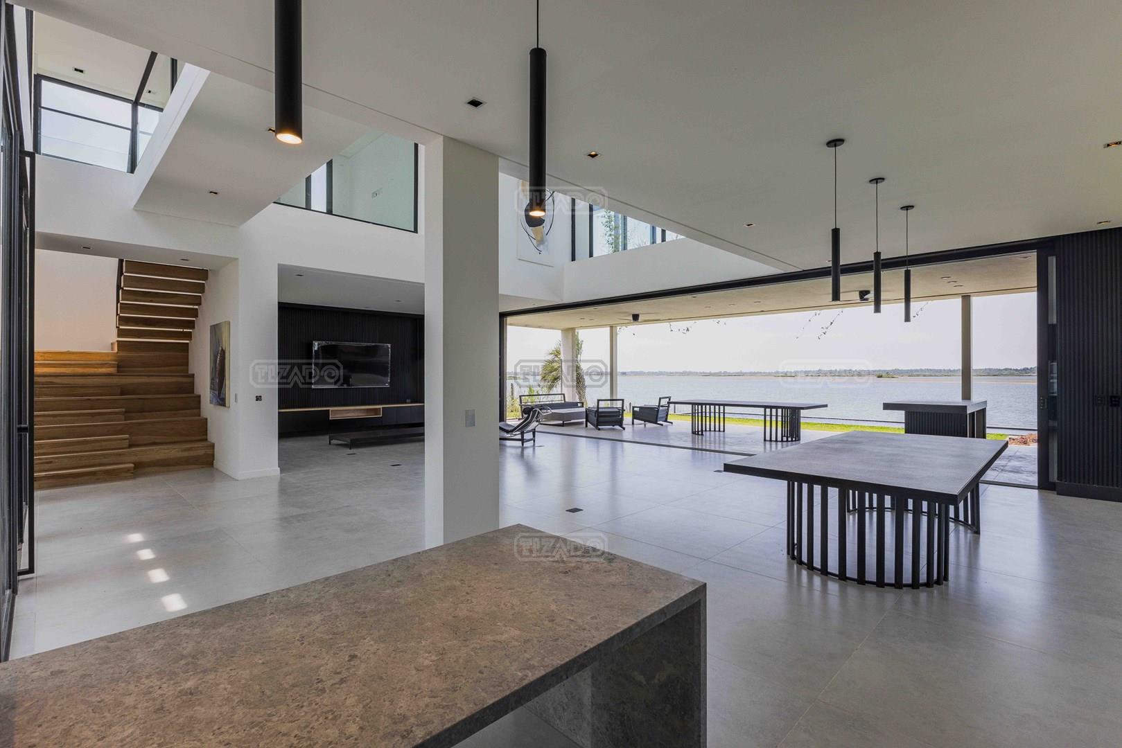 La casa propone una llegada escénica: hall vidriado, estanque y puerta de 7 m con la laguna en primer plano. Un area social (Living y comedor ) con 12.7 m de abertura total hacia galería con sector parrilla con gran isla, y el sector sala de estar con fogonero. Cocina de autor con isla. En PB: dormitorio suite y escritorio en suite, bodega y toilette. Lavadero inteligente con tender automático y Laundry Jet. En PA: playroom y 2º escritorio; 3 suites (dos con terraza) y master con terraza a la laguna, vestidor con luz natural y baño spa con doble ducha y sauna. Afuera, pileta con borde infinito y playa húmeda (12,70 × 3,40), baño y ducha exteriores, jardín con riego e iluminación. Cochera cubierta x2 y espacio guardacoches para 4 vehiculos mas. Operación: Venta Tipo: Casa Ubicación: Marinas – Puertos, Escobar (GBA Norte) Ambientes: 7 o más Dormitorios: 5 (en suite) Baños: 6 + toilette + baño exterior de pileta Cocheras: 2 cubiertas , 4 descubiertas Disposición: Fondo a laguna central con vista infinita Pileta: Sí (infinita + playa húmeda) Terraza/Balcón: Sí (cada dormitorio cuenta con su terraza propia) Calefacción/Climatización: Losa a gas, A/A (varios), domótica Dependencia en suite PB Escritorio en suite PB A estrenar Amenities del barrio: Seguridad 24hs, lagunas navegables, naútica, club deportivo, polo gastronomico y comercial, escuelas y rapido acceso a ruta 25 y a Panamericana. KM45 Detalles constructivos Open Concept. Abierto hacia la galería con aberturas empotradas y sin columnas 12.70 mts de vista abierta hacia la laguna. Sala de máquinas. Galeria con losa radiante Aberturas de PVC de aluminio negro con DVH. Instalacion Domotica. Piso: Laminas de Porcelanato color Gris hueso de 1,60mts x 1,60mts Muebles hechos con melamina Egger importada de Suiza. Herrajes importados. Accesorios de muebles de cocina importados. 2 hornos eléctricos ARISTON empotrables 1 horno microondas AEG alemán Bacha de cocina de acero negro importada automatica ultima generacion Isla y mesada en marmol con anafe de 90 cmts de 6 hornallas y extractor extraible automatico Artefactos de iluminación de última tecnología. Parrilla, horno, mesacada con bacha importada con canilla embutida Playa al lago 2 Calderas BAXI LUNA para calefacción . 1 termotanque alta recuperación 160 lts. Bomba Grundfos . 2 colectores de losa radiante. Computadora y sistema de riego automático Hunter/Raindeer Estructura de Hormigón H30. Vigas de hormigón H30. Columnas de hormigón H30. Tabiques de Hormigón Visto H30. Altura a cielo raso : 3 mts Altura a cielo raso Living 1 :doble altura 7 mts. Coordiná recorrido ahora: la mejor vista de Marinas te está esperando. The house offers a dramatic arrival: a glazed hall, reflecting pond, and a 7-meter glass door framing the lagoon. Social area (living & dining): a total opening of 12.7 m to the covered gallery—BBQ/grill zone with a large island—and a lounge area with a fire pit. Signature kitchen with island. Ground floor: en-suite bedroom and an en-suite office, wine cellar, and powder room. Smart laundry with automatic drying rack and Laundry Jet. Upper floor: playroom and a second office; 3 suites (two with private terraces) and a primary suite with terrace over the lagoon, walk-in closet with natural light, and spa bathroom with double shower and sauna. Outdoors: infinity pool with sun shelf (12.70 × 3.40 m), outdoor bathroom and shower, landscaped garden with irrigation and lighting. Two covered parking spaces plus room to park four more vehicles. Operation: Sale Property type: House Location: Marinas – Puertos, Escobar (Northern GBA) Rooms: 7 or more Bedrooms: 5 (all en-suite) Bathrooms: 6 + powder room + outdoor pool bathroom Parking: 2 covered, 4 uncovered Lot orientation: Central lagoon backline with unobstructed view Pool: Yes (infinity + sun shelf) Terraces/Balconies: Yes (each bedroom has its own terrace) Heating/AC: Gas radiant slab heating, multiple A/C units, home automation Service quarters: En-suite on ground floor Office: En-suite office on ground floor Condition: Brand-new Neighborhood amenities: 24/7 security, navigable lagoons, nautical activities, sports club, dining & retail hub, schools, and quick access to Route 25 and Pan-American Highway (Km 45) Construction details Open concept. Seamless connection to the gallery with recessed, column-free openings and 12.70 m of unobstructed lagoon view. Mechanical room. Gallery with radiant floor heating. Black aluminum/PVC double-glazed windows (DVH). Home automation system. Flooring: 160 × 160 cm bone-gray porcelain slabs. Cabinetry: custom, with Egger laminated boards (imported). Imported hardware and kitchen accessories. Appliances: two built-in ARISTON electric ovens; one AEG microwave (German). Kitchen sink: imported black steel, latest-generation with automatic features. Counters & island: marble; 90 cm cooktop with 6 burners and automatic retractable downdraft extractor. Lighting: state-of-the-art fixtures. Outdoor kitchen (gallery): built-in grill, oven, countertop with imported sink and recessed faucet. Lakefront “beach” access. Heating & hot water: two BAXI LUNA boilers (heating) + 160 L high-recovery water heater. Pump: Grundfos. Radiant system: two manifold collectors. Irrigation: controller and automatic system Hunter/Rain Bird. Structure: reinforced concrete H30 (beams, columns, exposed concrete walls). Ceiling heights: 3 m standard; double-height living at 7 m. Schedule a private tour now—Marinas’ finest view is waiting for you.