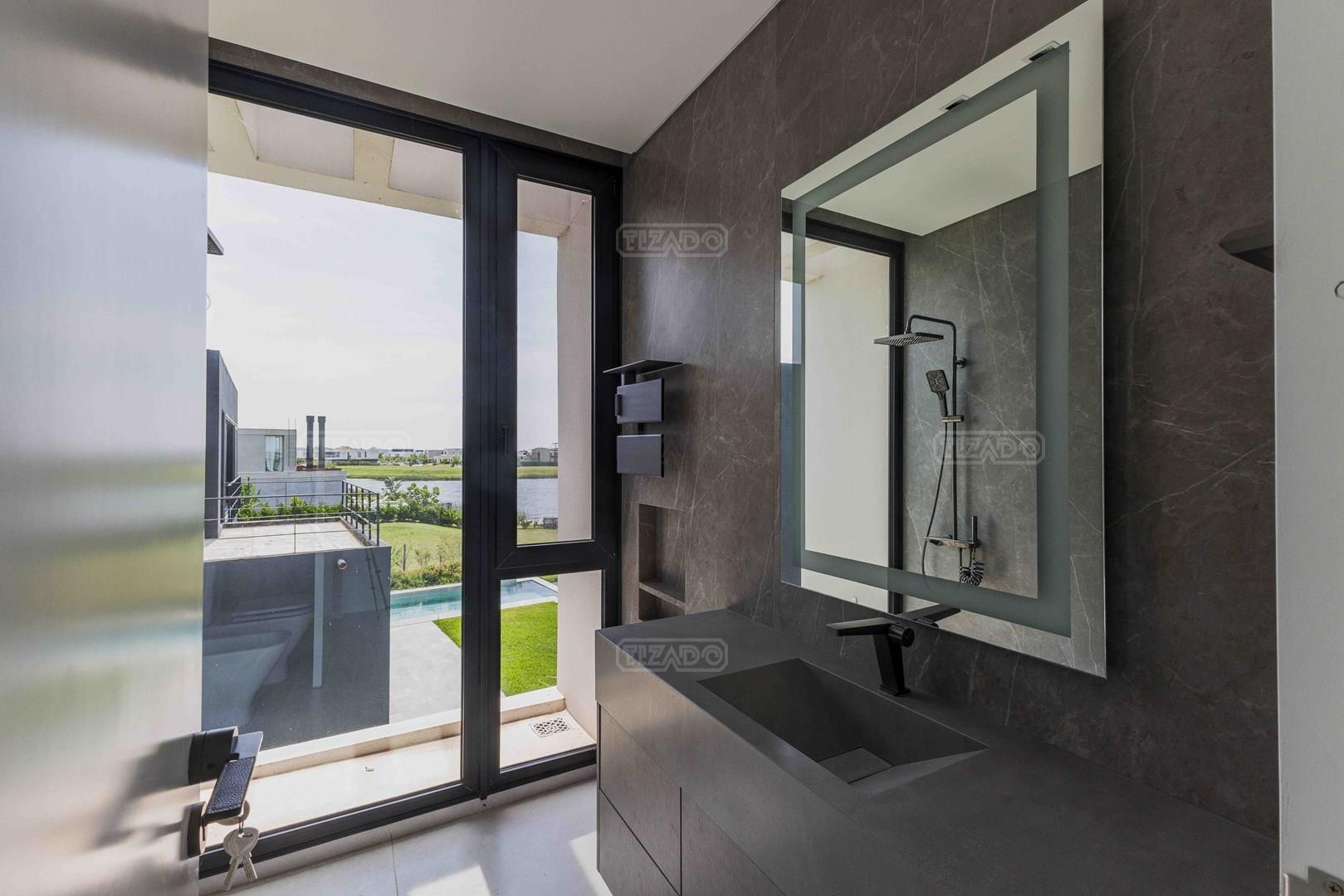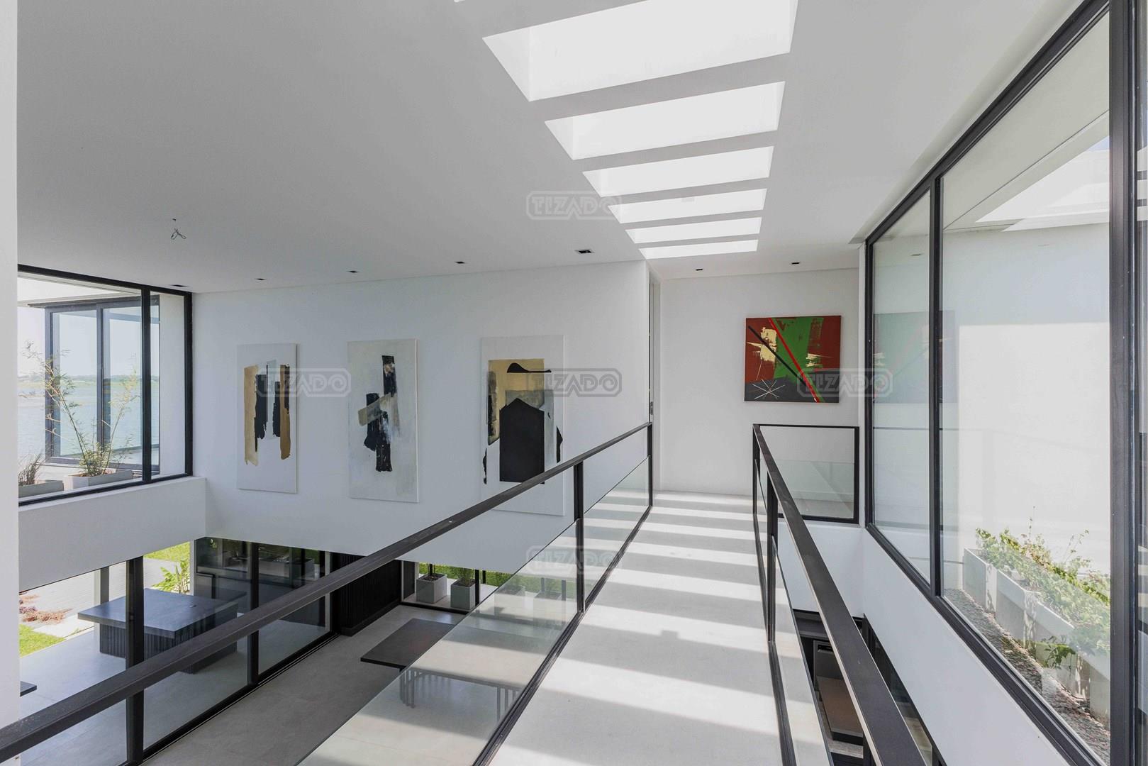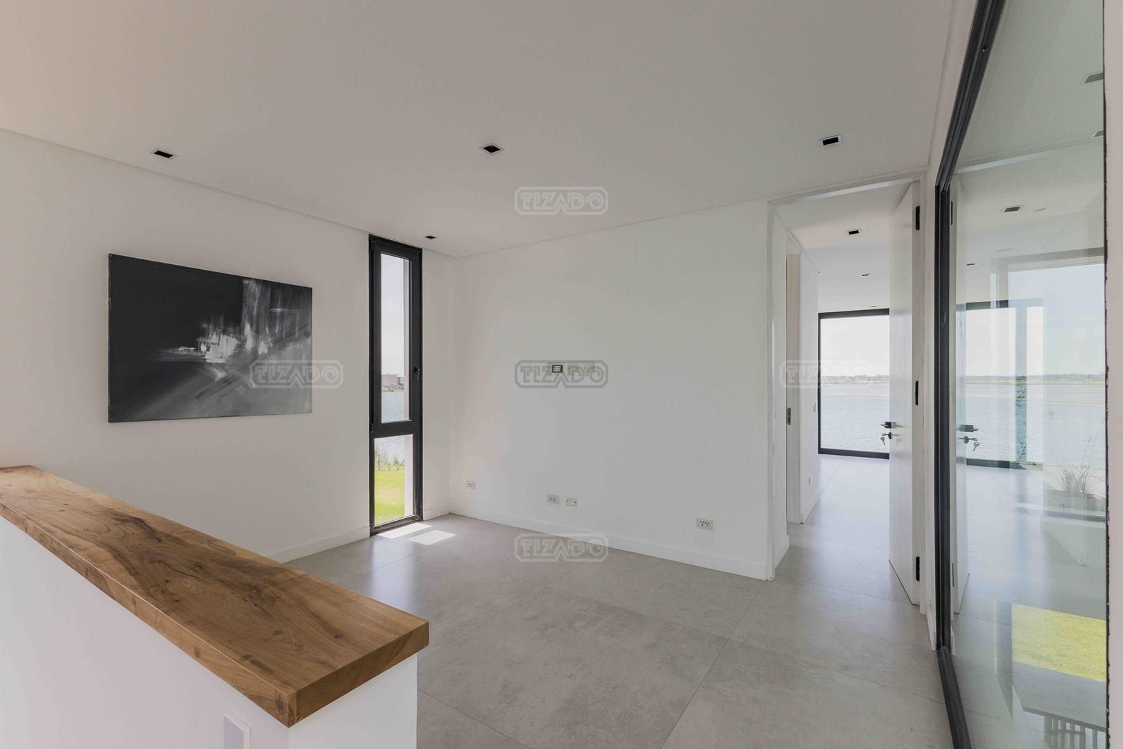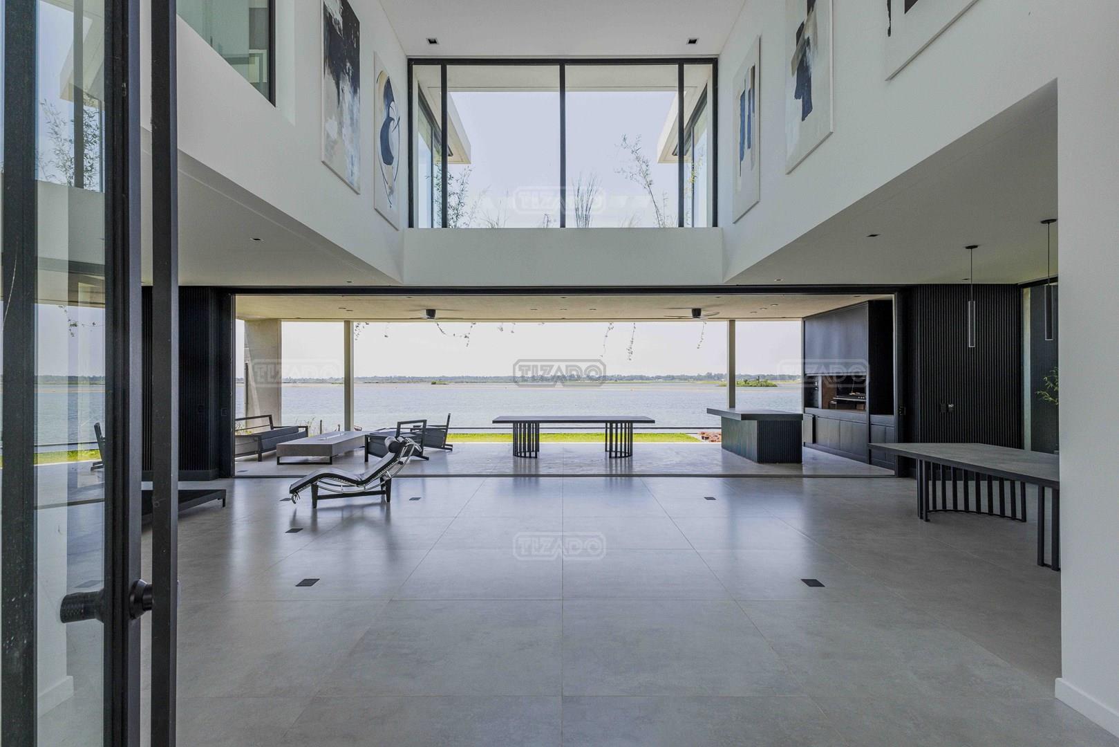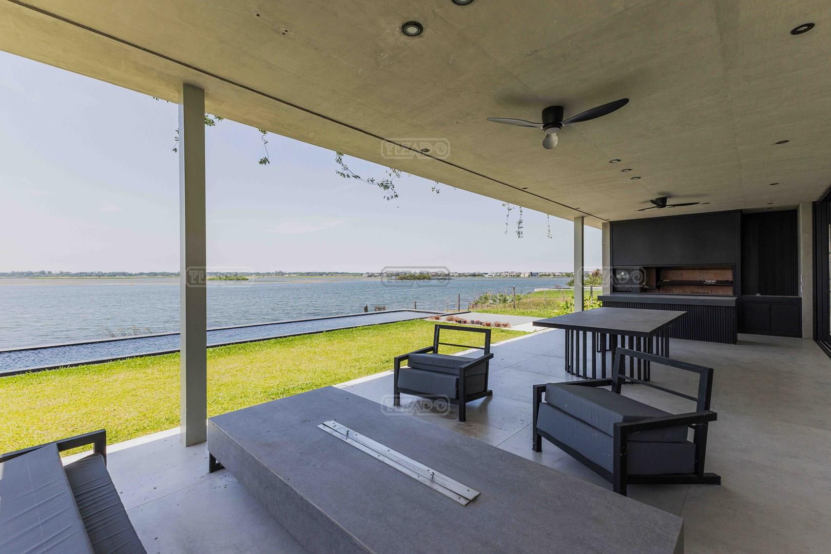 La casa propone una llegada escénica: hall vidriado, estanque y puerta de 7 m con la laguna en primer plano. Un area social (Living y comedor ) con 12.7 m de abertura total hacia galería con sector parrilla con gran isla, y el sector sala de estar con fogonero. Cocina de autor con isla. En PB: dormitorio suite y escritorio en suite, bodega y toilette. Lavadero inteligente con tender automático y Laundry Jet. En PA: playroom y 2º escritorio; 3 suites (dos con terraza) y master con terraza a la laguna, vestidor con luz natural y baño spa con doble ducha y sauna. Afuera, pileta con borde infinito y playa húmeda (12,70 × 3,40), baño y ducha exteriores, jardín con riego e iluminación. Cochera cubierta x2 y espacio guardacoches para 4 vehiculos mas. Operación: Venta Tipo: Casa Ubicación: Marinas – Puertos, Escobar (GBA Norte) Ambientes: 7 o más Dormitorios: 5 (en suite) Baños: 6 + toilette + baño exterior de pileta Cocheras: 2 cubiertas , 4 descubiertas Disposición: Fondo a laguna central con vista infinita Pileta: Sí (infinita + playa húmeda) Terraza/Balcón: Sí (cada dormitorio cuenta con su terraza propia) Calefacción/Climatización: Losa a gas, A/A (varios), domótica Dependencia en suite PB Escritorio en suite PB A estrenar Amenities del barrio: Seguridad 24hs, lagunas navegables, naútica, club deportivo, polo gastronomico y comercial, escuelas y rapido acceso a ruta 25 y a Panamericana. KM45 Detalles constructivos Open Concept. Abierto hacia la galería con aberturas empotradas y sin columnas 12.70 mts de vista abierta hacia la laguna. Sala de máquinas. Galeria con losa radiante Aberturas de PVC de aluminio negro con DVH. Instalacion Domotica. Piso: Laminas de Porcelanato color Gris hueso de 1,60mts x 1,60mts Muebles hechos con melamina Egger importada de Suiza. Herrajes importados. Accesorios de muebles de cocina importados. 2 hornos eléctricos ARISTON empotrables 1 horno microondas AEG alemán Bacha de cocina de acero negro importada automatica ultima generacion Isla y mesada en marmol con anafe de 90 cmts de 6 hornallas y extractor extraible automatico Artefactos de iluminación de última tecnología. Parrilla, horno, mesacada con bacha importada con canilla embutida Playa al lago 2 Calderas BAXI LUNA para calefacción . 1 termotanque alta recuperación 160 lts. Bomba Grundfos . 2 colectores de losa radiante. Computadora y sistema de riego automático Hunter/Raindeer Estructura de Hormigón H30. Vigas de hormigón H30. Columnas de hormigón H30. Tabiques de Hormigón Visto H30. Altura a cielo raso : 3 mts Altura a cielo raso Living 1 :doble altura 7 mts. Coordiná recorrido ahora: la mejor vista de Marinas te está esperando. The house offers a dramatic arrival: a glazed hall, reflecting pond, and a 7-meter glass door framing the lagoon. Social area (living & dining): a total opening of 12.7 m to the covered gallery—BBQ/grill zone with a large island—and a lounge area with a fire pit. Signature kitchen with island. Ground floor: en-suite bedroom and an en-suite office, wine cellar, and powder room. Smart laundry with automatic drying rack and Laundry Jet. Upper floor: playroom and a second office; 3 suites (two with private terraces) and a primary suite with terrace over the lagoon, walk-in closet with natural light, and spa bathroom with double shower and sauna. Outdoors: infinity pool with sun shelf (12.70 × 3.40 m), outdoor bathroom and shower, landscaped garden with irrigation and lighting. Two covered parking spaces plus room to park four more vehicles. Operation: Sale Property type: House Location: Marinas – Puertos, Escobar (Northern GBA) Rooms: 7 or more Bedrooms: 5 (all en-suite) Bathrooms: 6 + powder room + outdoor pool bathroom Parking: 2 covered, 4 uncovered Lot orientation: Central lagoon backline with unobstructed view Pool: Yes (infinity + sun shelf) Terraces/Balconies: Yes (each bedroom has its own terrace) Heating/AC: Gas radiant slab heating, multiple A/C units, home automation Service quarters: En-suite on ground floor Office: En-suite office on ground floor Condition: Brand-new Neighborhood amenities: 24/7 security, navigable lagoons, nautical activities, sports club, dining & retail hub, schools, and quick access to Route 25 and Pan-American Highway (Km 45) Construction details Open concept. Seamless connection to the gallery with recessed, column-free openings and 12.70 m of unobstructed lagoon view. Mechanical room. Gallery with radiant floor heating. Black aluminum/PVC double-glazed windows (DVH). Home automation system. Flooring: 160 × 160 cm bone-gray porcelain slabs. Cabinetry: custom, with Egger laminated boards (imported). Imported hardware and kitchen accessories. Appliances: two built-in ARISTON electric ovens; one AEG microwave (German). Kitchen sink: imported black steel, latest-generation with automatic features. Counters & island: marble; 90 cm cooktop with 6 burners and automatic retractable downdraft extractor. Lighting: state-of-the-art fixtures. Outdoor kitchen (gallery): built-in grill, oven, countertop with imported sink and recessed faucet. Lakefront “beach” access. Heating & hot water: two BAXI LUNA boilers (heating) + 160 L high-recovery water heater. Pump: Grundfos. Radiant system: two manifold collectors. Irrigation: controller and automatic system Hunter/Rain Bird. Structure: reinforced concrete H30 (beams, columns, exposed concrete walls). Ceiling heights: 3 m standard; double-height living at 7 m. Schedule a private tour now—Marinas’ finest view is waiting for you.