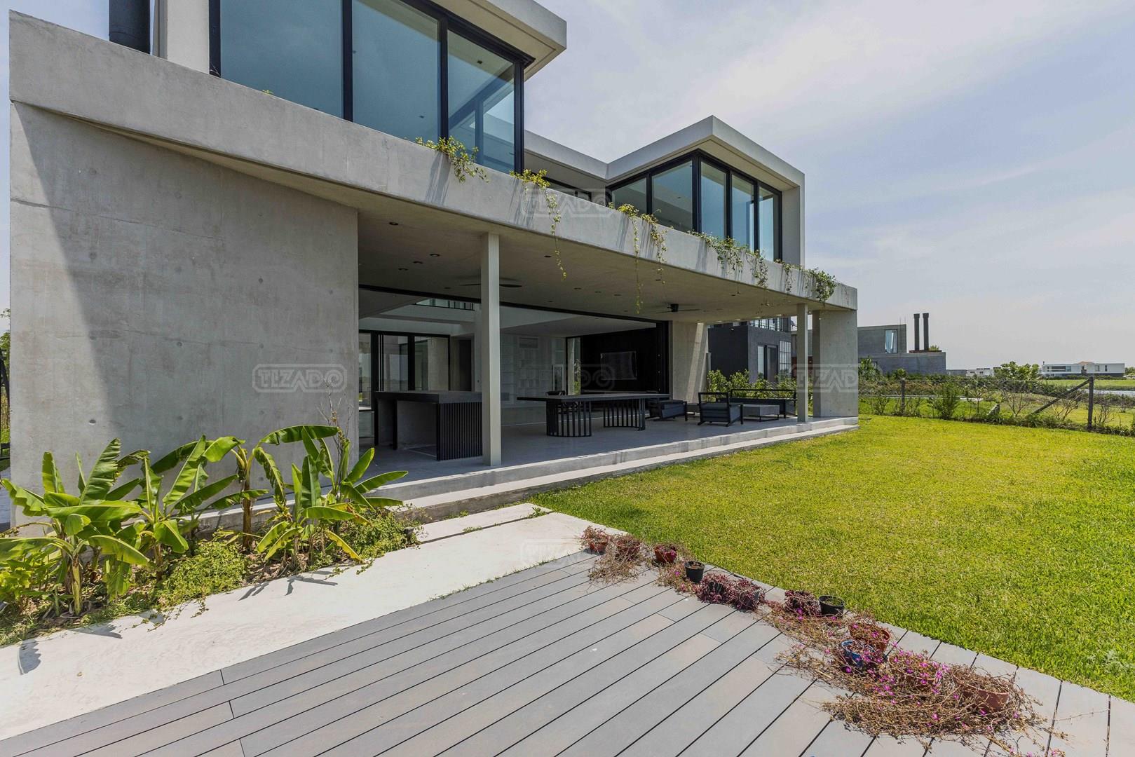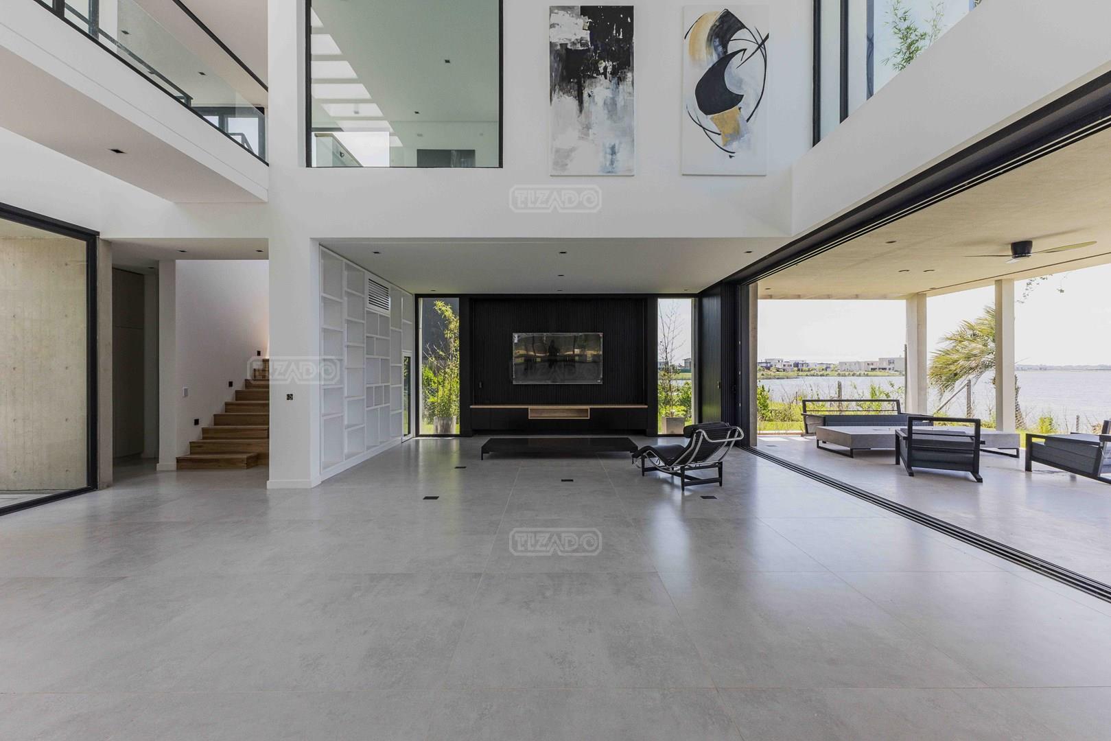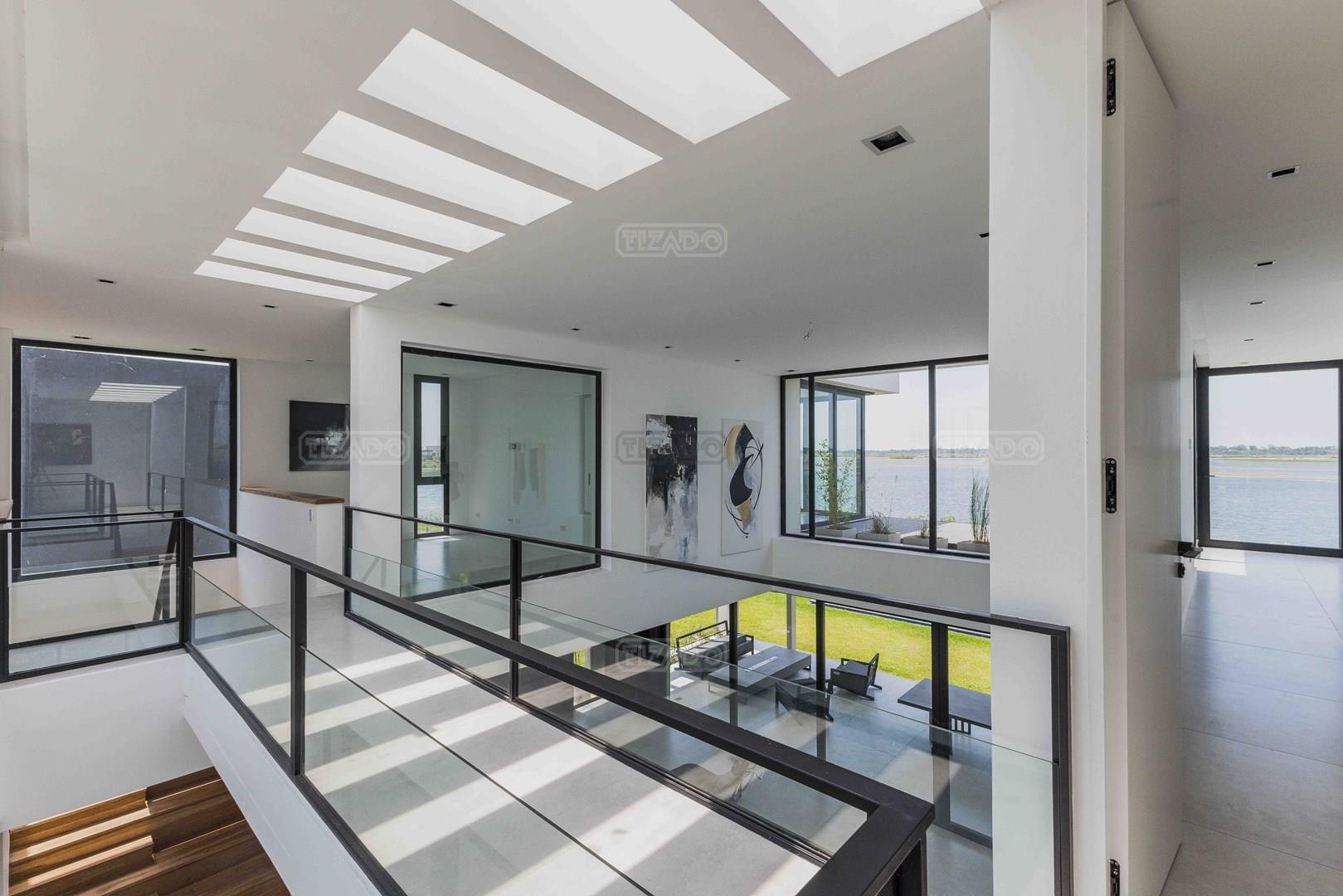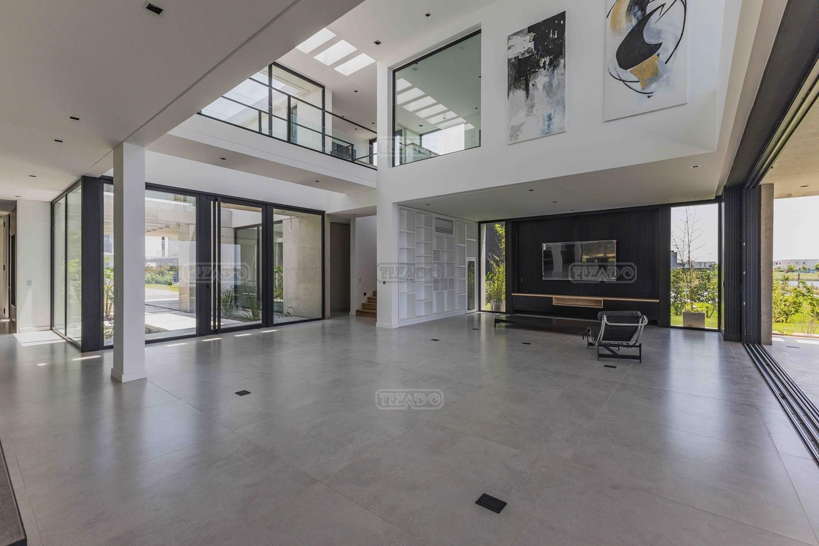 La casa propone una llegada escénica: hall vidriado, estanque y puerta de 7 m con la laguna en primer plano. Un area social (Living y comedor ) con 12.7 m de abertura total hacia galería con sector parrilla con gran isla, y el sector sala de estar con fogonero. Cocina de autor con isla. En PB: dormitorio suite y escritorio en suite, bodega y toilette. Lavadero inteligente con tender automático y Laundry Jet. En PA: playroom y 2º escritorio; 3 suites (dos con terraza) y master con terraza a la laguna, vestidor con luz natural y baño spa con doble ducha y sauna. Afuera, pileta con borde infinito y playa húmeda (12,70 × 3,40), baño y ducha exteriores, jardín con riego e iluminación. Cochera cubierta x2 y espacio guardacoches para 4 vehiculos mas. Operación: Venta Tipo: Casa Ubicación: Marinas – Puertos, Escobar (GBA Norte) Ambientes: 7 o más Dormitorios: 5 (en suite) Baños: 6 + toilette + baño exterior de pileta Cocheras: 2 cubiertas , 4 descubiertas Disposición: Fondo a laguna central con vista infinita Pileta: Sí (infinita + playa húmeda) Terraza/Balcón: Sí (cada dormitorio cuenta con su terraza propia) Calefacción/Climatización: Losa a gas, A/A (varios), domótica Dependencia en suite PB Escritorio en suite PB A estrenar Amenities del barrio: Seguridad 24hs, lagunas navegables, naútica, club deportivo, polo gastronomico y comercial, escuelas y rapido acceso a ruta 25 y a Panamericana. KM45 Detalles constructivos Open Concept. Abierto hacia la galería con aberturas empotradas y sin columnas 12.70 mts de vista abierta hacia la laguna. Sala de máquinas. Galeria con losa radiante Aberturas de PVC de aluminio negro con DVH. Instalacion Domotica. Piso: Laminas de Porcelanato color Gris hueso de 1,60mts x 1,60mts Muebles hechos con melamina Egger importada de Suiza. Herrajes importados. Accesorios de muebles de cocina importados. 2 hornos eléctricos ARISTON empotrables 1 horno microondas AEG alemán Bacha de cocina de acero negro importada automatica ultima generacion Isla y mesada en marmol con anafe de 90 cmts de 6 hornallas y extractor extraible automatico Artefactos de iluminación de última tecnología. Parrilla, horno, mesacada con bacha importada con canilla embutida Playa al lago 2 Calderas BAXI LUNA para calefacción . 1 termotanque alta recuperación 160 lts. Bomba Grundfos . 2 colectores de losa radiante. Computadora y sistema de riego automático Hunter/Raindeer Estructura de Hormigón H30. Vigas de hormigón H30. Columnas de hormigón H30. Tabiques de Hormigón Visto H30. Altura a cielo raso : 3 mts Altura a cielo raso Living 1 :doble altura 7 mts. Coordiná recorrido ahora: la mejor vista de Marinas te está esperando. The house offers a dramatic arrival: a glazed hall, reflecting pond, and a 7-meter glass door framing the lagoon. Social area (living & dining): a total opening of 12.7 m to the covered gallery—BBQ/grill zone with a large island—and a lounge area with a fire pit. Signature kitchen with island. Ground floor: en-suite bedroom and an en-suite office, wine cellar, and powder room. Smart laundry with automatic drying rack and Laundry Jet. Upper floor: playroom and a second office; 3 suites (two with private terraces) and a primary suite with terrace over the lagoon, walk-in closet with natural light, and spa bathroom with double shower and sauna. Outdoors: infinity pool with sun shelf (12.70 × 3.40 m), outdoor bathroom and shower, landscaped garden with irrigation and lighting. Two covered parking spaces plus room to park four more vehicles. Operation: Sale Property type: House Location: Marinas – Puertos, Escobar (Northern GBA) Rooms: 7 or more Bedrooms: 5 (all en-suite) Bathrooms: 6 + powder room + outdoor pool bathroom Parking: 2 covered, 4 uncovered Lot orientation: Central lagoon backline with unobstructed view Pool: Yes (infinity + sun shelf) Terraces/Balconies: Yes (each bedroom has its own terrace) Heating/AC: Gas radiant slab heating, multiple A/C units, home automation Service quarters: En-suite on ground floor Office: En-suite office on ground floor Condition: Brand-new Neighborhood amenities: 24/7 security, navigable lagoons, nautical activities, sports club, dining & retail hub, schools, and quick access to Route 25 and Pan-American Highway (Km 45) Construction details Open concept. Seamless connection to the gallery with recessed, column-free openings and 12.70 m of unobstructed lagoon view. Mechanical room. Gallery with radiant floor heating. Black aluminum/PVC double-glazed windows (DVH). Home automation system. Flooring: 160 × 160 cm bone-gray porcelain slabs. Cabinetry: custom, with Egger laminated boards (imported). Imported hardware and kitchen accessories. Appliances: two built-in ARISTON electric ovens; one AEG microwave (German). Kitchen sink: imported black steel, latest-generation with automatic features. Counters & island: marble; 90 cm cooktop with 6 burners and automatic retractable downdraft extractor. Lighting: state-of-the-art fixtures. Outdoor kitchen (gallery): built-in grill, oven, countertop with imported sink and recessed faucet. Lakefront “beach” access. Heating & hot water: two BAXI LUNA boilers (heating) + 160 L high-recovery water heater. Pump: Grundfos. Radiant system: two manifold collectors. Irrigation: controller and automatic system Hunter/Rain Bird. Structure: reinforced concrete H30 (beams, columns, exposed concrete walls). Ceiling heights: 3 m standard; double-height living at 7 m. Schedule a private tour now—Marinas’ finest view is waiting for you.