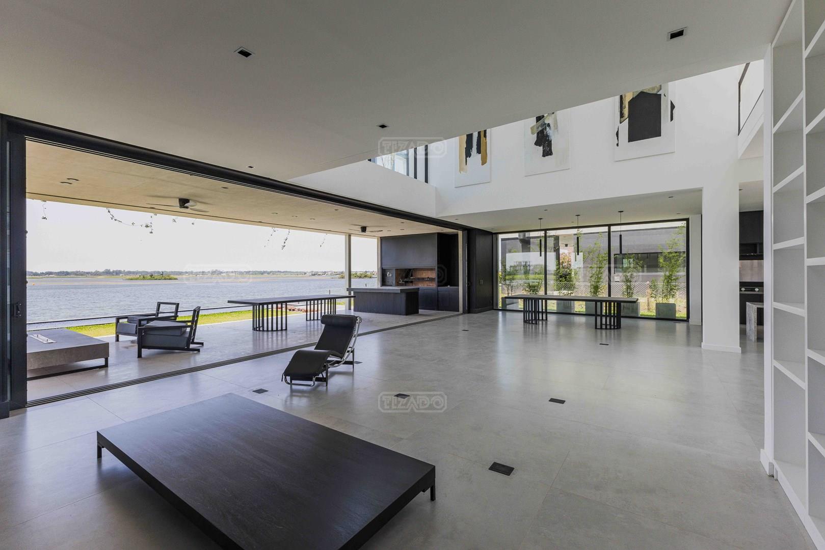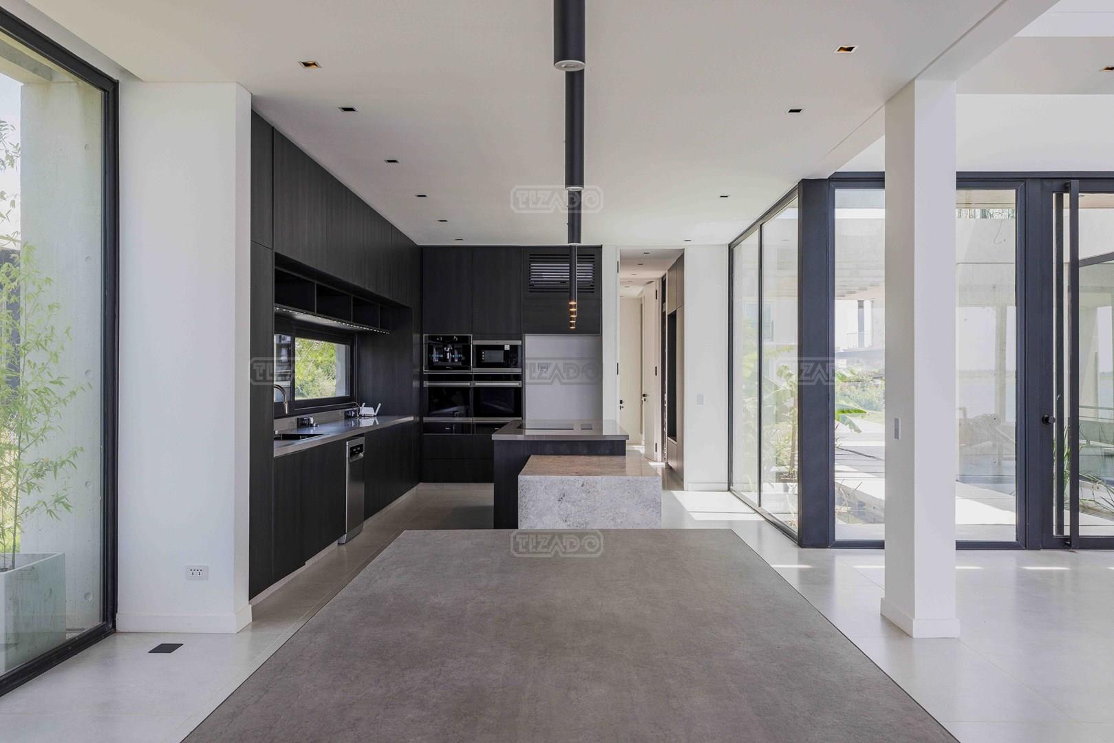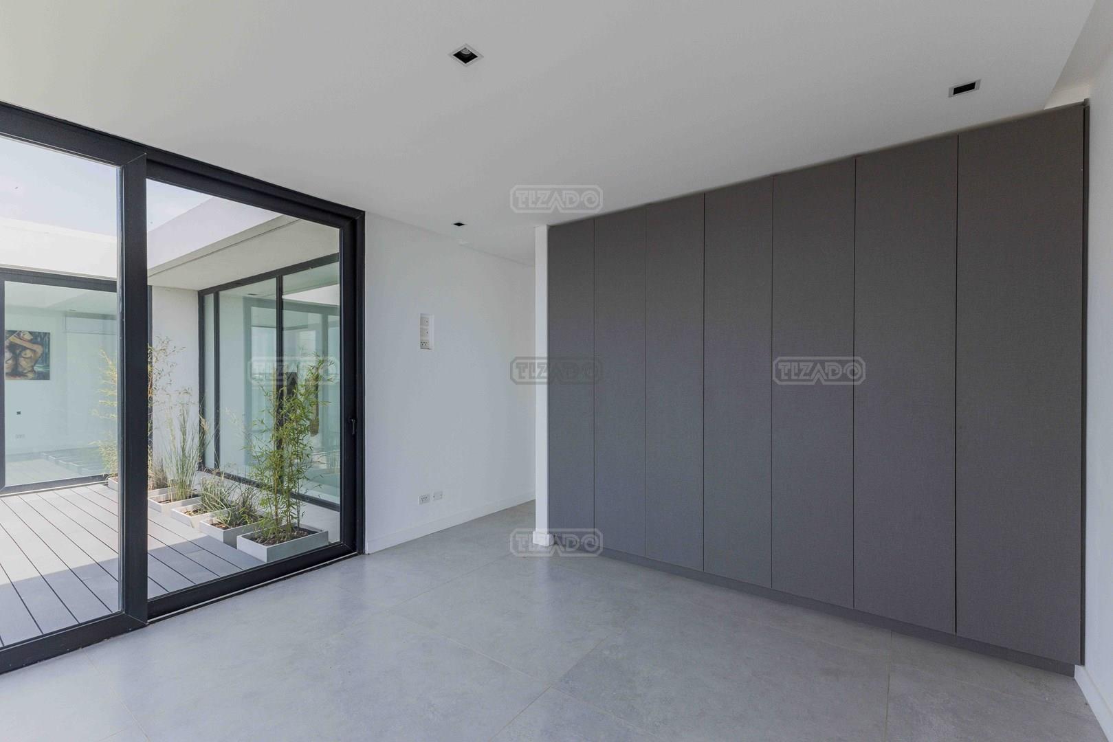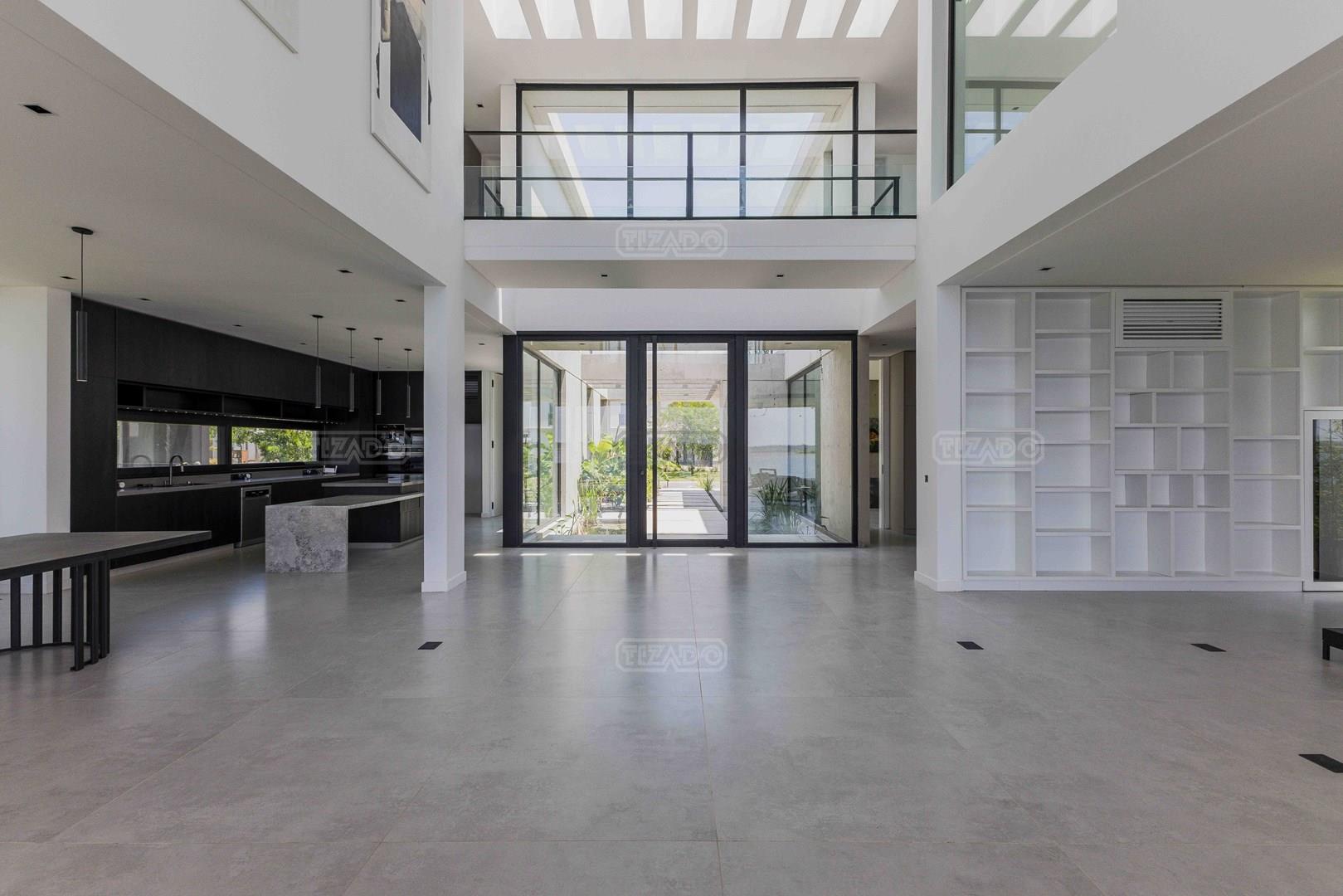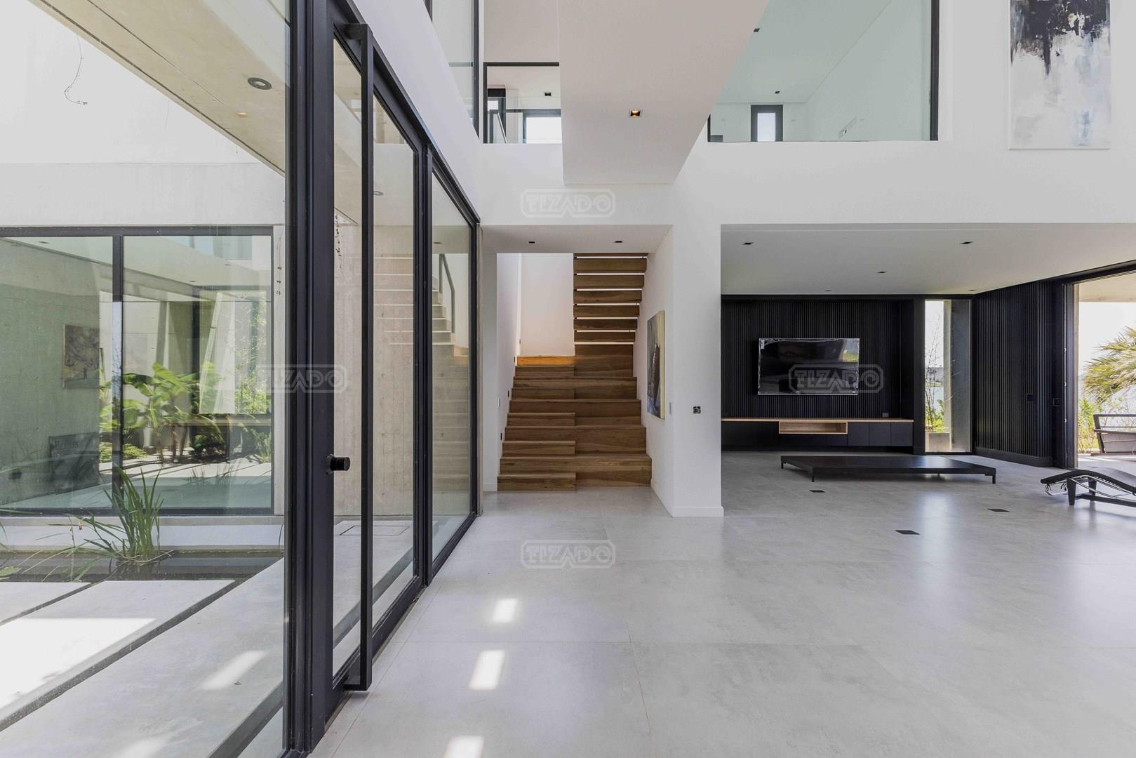 La casa propone una llegada escénica: hall vidriado, estanque y puerta de 7 m con la laguna en primer plano. Un area social (Living y comedor ) con 12.7 m de abertura total hacia galería con sector parrilla con gran isla, y el sector sala de estar con fogonero. Cocina de autor con isla. En PB: dormitorio suite y escritorio en suite, bodega y toilette. Lavadero inteligente con tender automático y Laundry Jet. En PA: playroom y 2º escritorio; 3 suites (dos con terraza) y master con terraza a la laguna, vestidor con luz natural y baño spa con doble ducha y sauna. Afuera, pileta con borde infinito y playa húmeda (12,70 × 3,40), baño y ducha exteriores, jardín con riego e iluminación. Cochera cubierta x2 y espacio guardacoches para 4 vehiculos mas. Operación: Venta Tipo: Casa Ubicación: Marinas – Puertos, Escobar (GBA Norte) Ambientes: 7 o más Dormitorios: 5 (en suite) Baños: 6 + toilette + baño exterior de pileta Cocheras: 2 cubiertas , 4 descubiertas Disposición: Fondo a laguna central con vista infinita Pileta: Sí (infinita + playa húmeda) Terraza/Balcón: Sí (cada dormitorio cuenta con su terraza propia) Calefacción/Climatización: Losa a gas, A/A (varios), domótica Dependencia en suite PB Escritorio en suite PB A estrenar Amenities del barrio: Seguridad 24hs, lagunas navegables, naútica, club deportivo, polo gastronomico y comercial, escuelas y rapido acceso a ruta 25 y a Panamericana. KM45 Detalles constructivos Open Concept. Abierto hacia la galería con aberturas empotradas y sin columnas 12.70 mts de vista abierta hacia la laguna. Sala de máquinas. Galeria con losa radiante Aberturas de PVC de aluminio negro con DVH. Instalacion Domotica. Piso: Laminas de Porcelanato color Gris hueso de 1,60mts x 1,60mts Muebles hechos con melamina Egger importada de Suiza. Herrajes importados. Accesorios de muebles de cocina importados. 2 hornos eléctricos ARISTON empotrables 1 horno microondas AEG alemán Bacha de cocina de acero negro importada automatica ultima generacion Isla y mesada en marmol con anafe de 90 cmts de 6 hornallas y extractor extraible automatico Artefactos de iluminación de última tecnología. Parrilla, horno, mesacada con bacha importada con canilla embutida Playa al lago 2 Calderas BAXI LUNA para calefacción . 1 termotanque alta recuperación 160 lts. Bomba Grundfos . 2 colectores de losa radiante. Computadora y sistema de riego automático Hunter/Raindeer Estructura de Hormigón H30. Vigas de hormigón H30. Columnas de hormigón H30. Tabiques de Hormigón Visto H30. Altura a cielo raso : 3 mts Altura a cielo raso Living 1 :doble altura 7 mts. Coordiná recorrido ahora: la mejor vista de Marinas te está esperando. The house offers a dramatic arrival: a glazed hall, reflecting pond, and a 7-meter glass door framing the lagoon. Social area (living & dining): a total opening of 12.7 m to the covered gallery—BBQ/grill zone with a large island—and a lounge area with a fire pit. Signature kitchen with island. Ground floor: en-suite bedroom and an en-suite office, wine cellar, and powder room. Smart laundry with automatic drying rack and Laundry Jet. Upper floor: playroom and a second office; 3 suites (two with private terraces) and a primary suite with terrace over the lagoon, walk-in closet with natural light, and spa bathroom with double shower and sauna. Outdoors: infinity pool with sun shelf (12.70 × 3.40 m), outdoor bathroom and shower, landscaped garden with irrigation and lighting. Two covered parking spaces plus room to park four more vehicles. Operation: Sale Property type: House Location: Marinas – Puertos, Escobar (Northern GBA) Rooms: 7 or more Bedrooms: 5 (all en-suite) Bathrooms: 6 + powder room + outdoor pool bathroom Parking: 2 covered, 4 uncovered Lot orientation: Central lagoon backline with unobstructed view Pool: Yes (infinity + sun shelf) Terraces/Balconies: Yes (each bedroom has its own terrace) Heating/AC: Gas radiant slab heating, multiple A/C units, home automation Service quarters: En-suite on ground floor Office: En-suite office on ground floor Condition: Brand-new Neighborhood amenities: 24/7 security, navigable lagoons, nautical activities, sports club, dining & retail hub, schools, and quick access to Route 25 and Pan-American Highway (Km 45) Construction details Open concept. Seamless connection to the gallery with recessed, column-free openings and 12.70 m of unobstructed lagoon view. Mechanical room. Gallery with radiant floor heating. Black aluminum/PVC double-glazed windows (DVH). Home automation system. Flooring: 160 × 160 cm bone-gray porcelain slabs. Cabinetry: custom, with Egger laminated boards (imported). Imported hardware and kitchen accessories. Appliances: two built-in ARISTON electric ovens; one AEG microwave (German). Kitchen sink: imported black steel, latest-generation with automatic features. Counters & island: marble; 90 cm cooktop with 6 burners and automatic retractable downdraft extractor. Lighting: state-of-the-art fixtures. Outdoor kitchen (gallery): built-in grill, oven, countertop with imported sink and recessed faucet. Lakefront “beach” access. Heating & hot water: two BAXI LUNA boilers (heating) + 160 L high-recovery water heater. Pump: Grundfos. Radiant system: two manifold collectors. Irrigation: controller and automatic system Hunter/Rain Bird. Structure: reinforced concrete H30 (beams, columns, exposed concrete walls). Ceiling heights: 3 m standard; double-height living at 7 m. Schedule a private tour now—Marinas’ finest view is waiting for you.