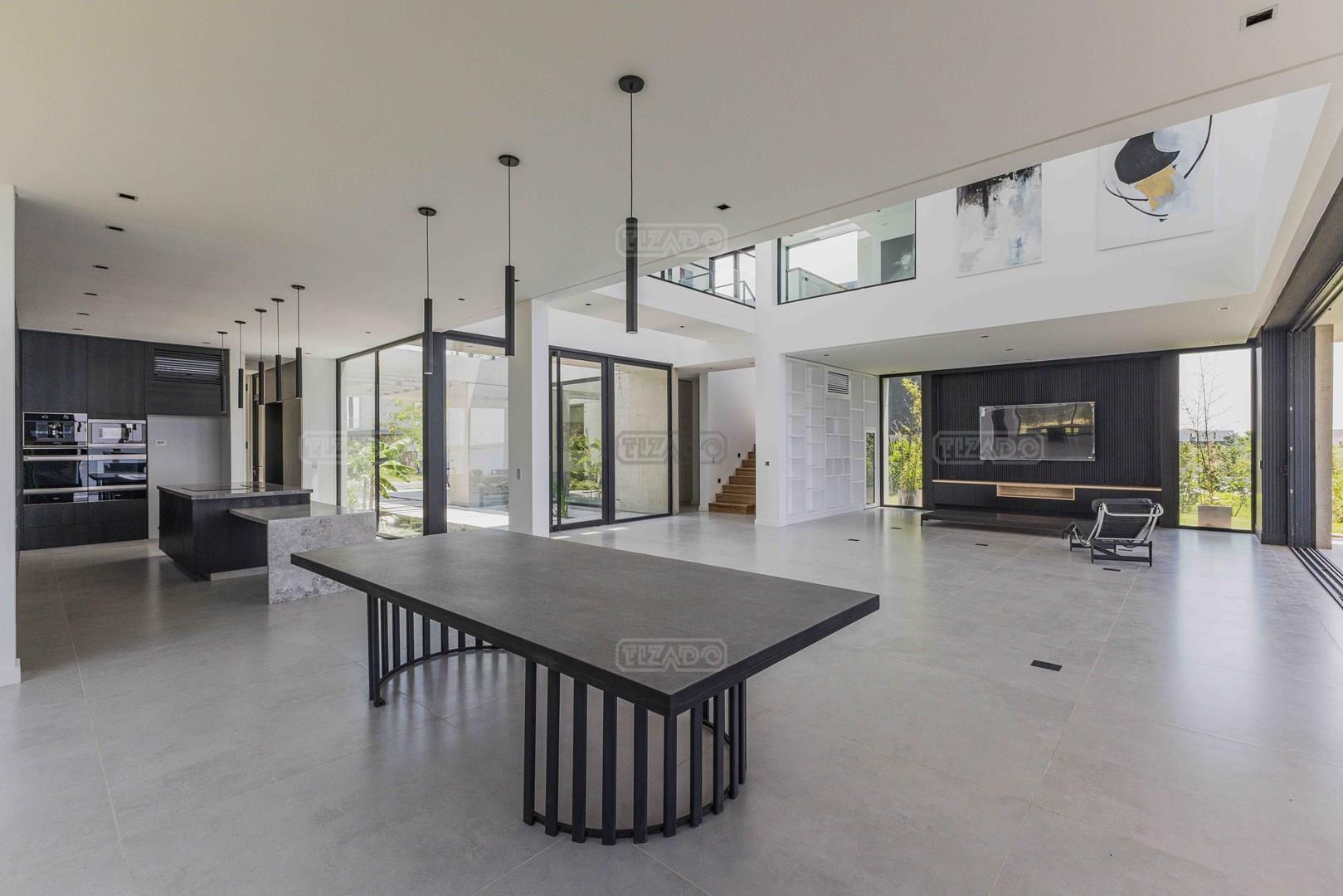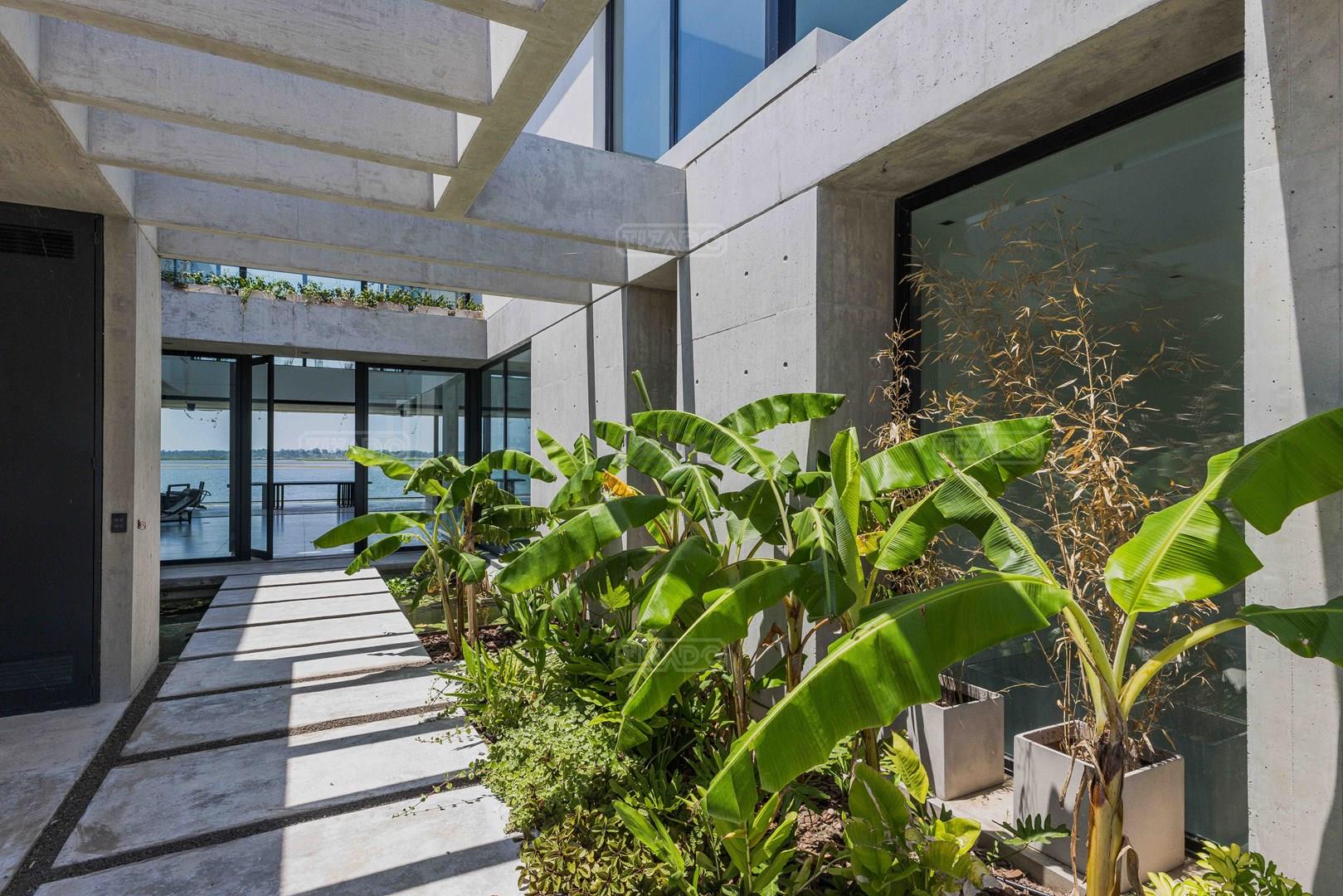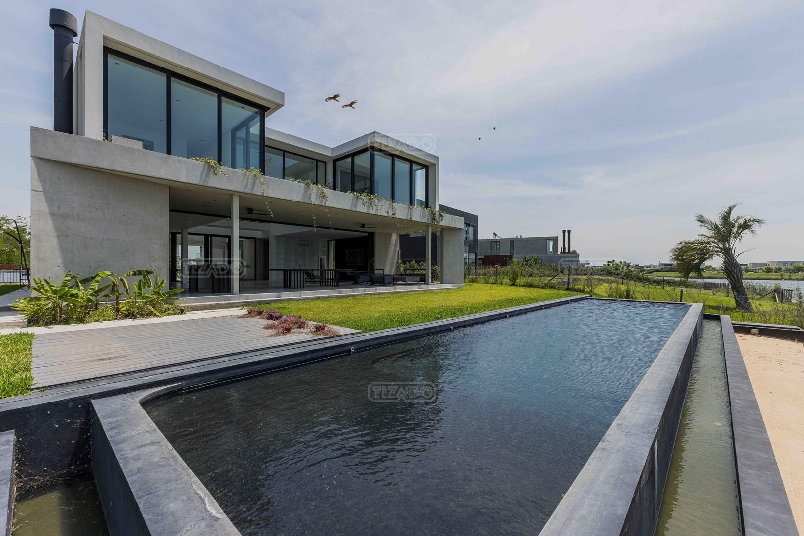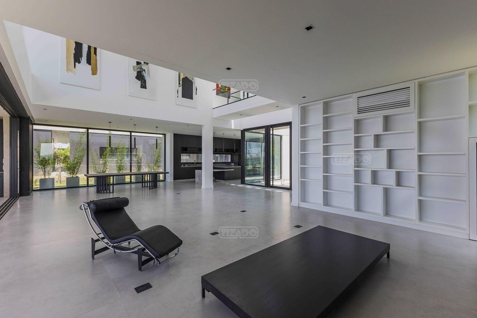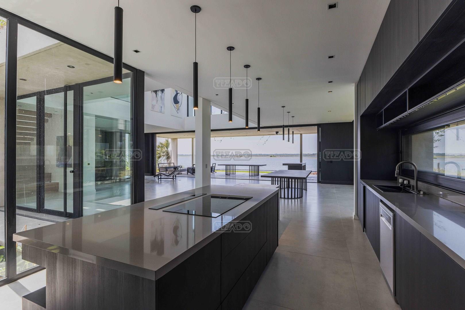 La casa propone una llegada escénica: hall vidriado, estanque y puerta de 7 m con la laguna en primer plano. Un area social (Living y comedor ) con 12.7 m de abertura total hacia galería con sector parrilla con gran isla, y el sector sala de estar con fogonero. Cocina de autor con isla. En PB: dormitorio suite y escritorio en suite, bodega y toilette. Lavadero inteligente con tender automático y Laundry Jet. En PA: playroom y 2º escritorio; 3 suites (dos con terraza) y master con terraza a la laguna, vestidor con luz natural y baño spa con doble ducha y sauna. Afuera, pileta con borde infinito y playa húmeda (12,70 × 3,40), baño y ducha exteriores, jardín con riego e iluminación. Cochera cubierta x2 y espacio guardacoches para 4 vehiculos mas. Operación: Venta Tipo: Casa Ubicación: Marinas – Puertos, Escobar (GBA Norte) Ambientes: 7 o más Dormitorios: 5 (en suite) Baños: 6 + toilette + baño exterior de pileta Cocheras: 2 cubiertas , 4 descubiertas Disposición: Fondo a laguna central con vista infinita Pileta: Sí (infinita + playa húmeda) Terraza/Balcón: Sí (cada dormitorio cuenta con su terraza propia) Calefacción/Climatización: Losa a gas, A/A (varios), domótica Dependencia en suite PB Escritorio en suite PB A estrenar Amenities del barrio: Seguridad 24hs, lagunas navegables, naútica, club deportivo, polo gastronomico y comercial, escuelas y rapido acceso a ruta 25 y a Panamericana. KM45 Detalles constructivos Open Concept. Abierto hacia la galería con aberturas empotradas y sin columnas 12.70 mts de vista abierta hacia la laguna. Sala de máquinas. Galeria con losa radiante Aberturas de PVC de aluminio negro con DVH. Instalacion Domotica. Piso: Laminas de Porcelanato color Gris hueso de 1,60mts x 1,60mts Muebles hechos con melamina Egger importada de Suiza. Herrajes importados. Accesorios de muebles de cocina importados. 2 hornos eléctricos ARISTON empotrables 1 horno microondas AEG alemán Bacha de cocina de acero negro importada automatica ultima generacion Isla y mesada en marmol con anafe de 90 cmts de 6 hornallas y extractor extraible automatico Artefactos de iluminación de última tecnología. Parrilla, horno, mesacada con bacha importada con canilla embutida Playa al lago 2 Calderas BAXI LUNA para calefacción . 1 termotanque alta recuperación 160 lts. Bomba Grundfos . 2 colectores de losa radiante. Computadora y sistema de riego automático Hunter/Raindeer Estructura de Hormigón H30. Vigas de hormigón H30. Columnas de hormigón H30. Tabiques de Hormigón Visto H30. Altura a cielo raso : 3 mts Altura a cielo raso Living 1 :doble altura 7 mts. Coordiná recorrido ahora: la mejor vista de Marinas te está esperando. The house offers a dramatic arrival: a glazed hall, reflecting pond, and a 7-meter glass door framing the lagoon. Social area (living & dining): a total opening of 12.7 m to the covered gallery—BBQ/grill zone with a large island—and a lounge area with a fire pit. Signature kitchen with island. Ground floor: en-suite bedroom and an en-suite office, wine cellar, and powder room. Smart laundry with automatic drying rack and Laundry Jet. Upper floor: playroom and a second office; 3 suites (two with private terraces) and a primary suite with terrace over the lagoon, walk-in closet with natural light, and spa bathroom with double shower and sauna. Outdoors: infinity pool with sun shelf (12.70 × 3.40 m), outdoor bathroom and shower, landscaped garden with irrigation and lighting. Two covered parking spaces plus room to park four more vehicles. Operation: Sale Property type: House Location: Marinas – Puertos, Escobar (Northern GBA) Rooms: 7 or more Bedrooms: 5 (all en-suite) Bathrooms: 6 + powder room + outdoor pool bathroom Parking: 2 covered, 4 uncovered Lot orientation: Central lagoon backline with unobstructed view Pool: Yes (infinity + sun shelf) Terraces/Balconies: Yes (each bedroom has its own terrace) Heating/AC: Gas radiant slab heating, multiple A/C units, home automation Service quarters: En-suite on ground floor Office: En-suite office on ground floor Condition: Brand-new Neighborhood amenities: 24/7 security, navigable lagoons, nautical activities, sports club, dining & retail hub, schools, and quick access to Route 25 and Pan-American Highway (Km 45) Construction details Open concept. Seamless connection to the gallery with recessed, column-free openings and 12.70 m of unobstructed lagoon view. Mechanical room. Gallery with radiant floor heating. Black aluminum/PVC double-glazed windows (DVH). Home automation system. Flooring: 160 × 160 cm bone-gray porcelain slabs. Cabinetry: custom, with Egger laminated boards (imported). Imported hardware and kitchen accessories. Appliances: two built-in ARISTON electric ovens; one AEG microwave (German). Kitchen sink: imported black steel, latest-generation with automatic features. Counters & island: marble; 90 cm cooktop with 6 burners and automatic retractable downdraft extractor. Lighting: state-of-the-art fixtures. Outdoor kitchen (gallery): built-in grill, oven, countertop with imported sink and recessed faucet. Lakefront “beach” access. Heating & hot water: two BAXI LUNA boilers (heating) + 160 L high-recovery water heater. Pump: Grundfos. Radiant system: two manifold collectors. Irrigation: controller and automatic system Hunter/Rain Bird. Structure: reinforced concrete H30 (beams, columns, exposed concrete walls). Ceiling heights: 3 m standard; double-height living at 7 m. Schedule a private tour now—Marinas’ finest view is waiting for you.