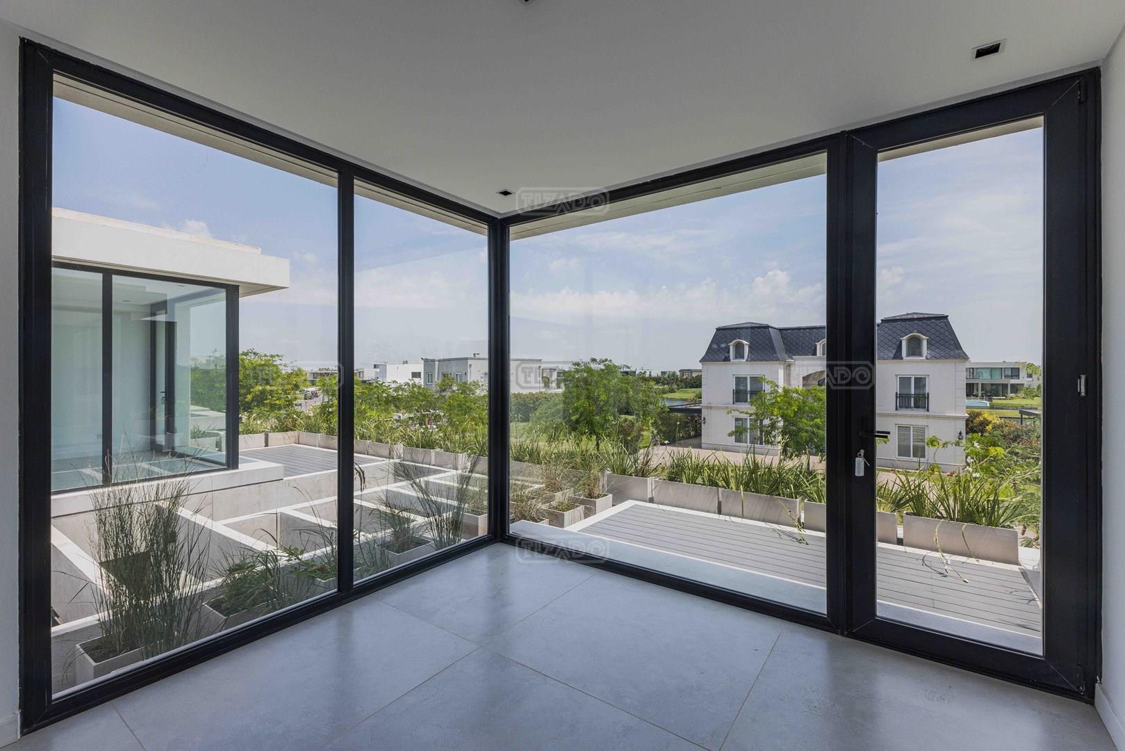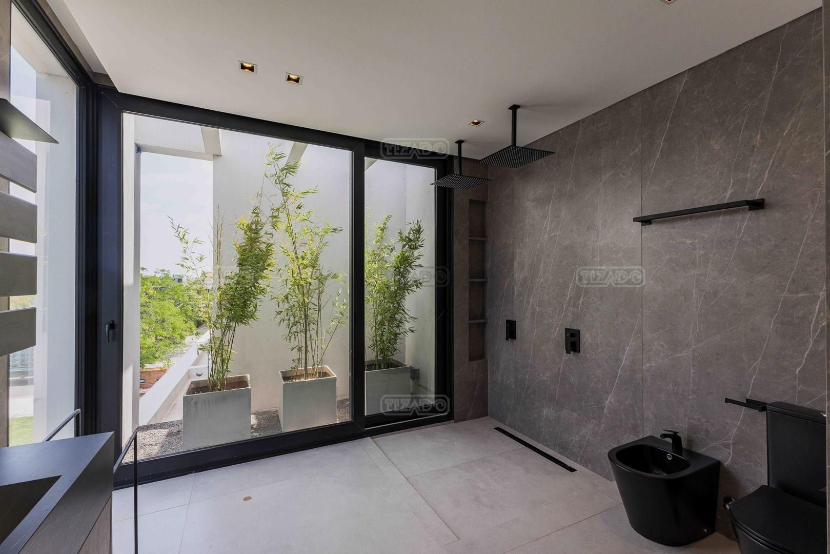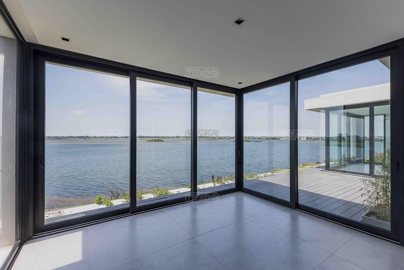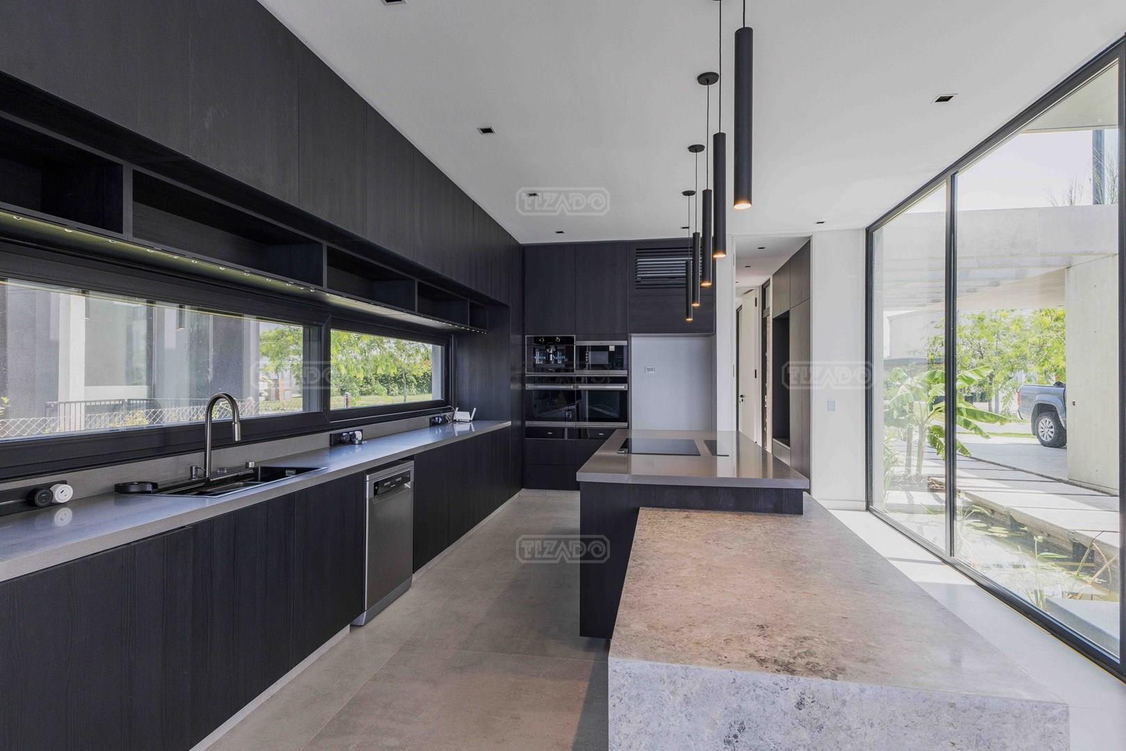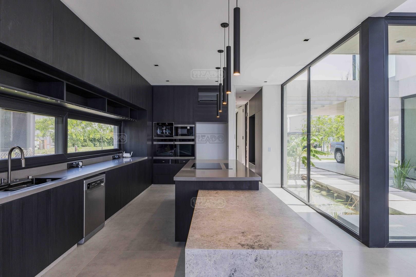 La casa propone una llegada escénica: hall vidriado, estanque y puerta de 7 m con la laguna en primer plano. Un area social (Living y comedor ) con 12.7 m de abertura total hacia galería con sector parrilla con gran isla, y el sector sala de estar con fogonero. Cocina de autor con isla. En PB: dormitorio suite y escritorio en suite, bodega y toilette. Lavadero inteligente con tender automático y Laundry Jet. En PA: playroom y 2º escritorio; 3 suites (dos con terraza) y master con terraza a la laguna, vestidor con luz natural y baño spa con doble ducha y sauna. Afuera, pileta con borde infinito y playa húmeda (12,70 × 3,40), baño y ducha exteriores, jardín con riego e iluminación. Cochera cubierta x2 y espacio guardacoches para 4 vehiculos mas. Operación: Venta Tipo: Casa Ubicación: Marinas – Puertos, Escobar (GBA Norte) Ambientes: 7 o más Dormitorios: 5 (en suite) Baños: 6 + toilette + baño exterior de pileta Cocheras: 2 cubiertas , 4 descubiertas Disposición: Fondo a laguna central con vista infinita Pileta: Sí (infinita + playa húmeda) Terraza/Balcón: Sí (cada dormitorio cuenta con su terraza propia) Calefacción/Climatización: Losa a gas, A/A (varios), domótica Dependencia en suite PB Escritorio en suite PB A estrenar Amenities del barrio: Seguridad 24hs, lagunas navegables, naútica, club deportivo, polo gastronomico y comercial, escuelas y rapido acceso a ruta 25 y a Panamericana. KM45 Detalles constructivos Open Concept. Abierto hacia la galería con aberturas empotradas y sin columnas 12.70 mts de vista abierta hacia la laguna. Sala de máquinas. Galeria con losa radiante Aberturas de PVC de aluminio negro con DVH. Instalacion Domotica. Piso: Laminas de Porcelanato color Gris hueso de 1,60mts x 1,60mts Muebles hechos con melamina Egger importada de Suiza. Herrajes importados. Accesorios de muebles de cocina importados. 2 hornos eléctricos ARISTON empotrables 1 horno microondas AEG alemán Bacha de cocina de acero negro importada automatica ultima generacion Isla y mesada en marmol con anafe de 90 cmts de 6 hornallas y extractor extraible automatico Artefactos de iluminación de última tecnología. Parrilla, horno, mesacada con bacha importada con canilla embutida Playa al lago 2 Calderas BAXI LUNA para calefacción . 1 termotanque alta recuperación 160 lts. Bomba Grundfos . 2 colectores de losa radiante. Computadora y sistema de riego automático Hunter/Raindeer Estructura de Hormigón H30. Vigas de hormigón H30. Columnas de hormigón H30. Tabiques de Hormigón Visto H30. Altura a cielo raso : 3 mts Altura a cielo raso Living 1 :doble altura 7 mts. Coordiná recorrido ahora: la mejor vista de Marinas te está esperando. The house offers a dramatic arrival: a glazed hall, reflecting pond, and a 7-meter glass door framing the lagoon. Social area (living & dining): a total opening of 12.7 m to the covered gallery—BBQ/grill zone with a large island—and a lounge area with a fire pit. Signature kitchen with island. Ground floor: en-suite bedroom and an en-suite office, wine cellar, and powder room. Smart laundry with automatic drying rack and Laundry Jet. Upper floor: playroom and a second office; 3 suites (two with private terraces) and a primary suite with terrace over the lagoon, walk-in closet with natural light, and spa bathroom with double shower and sauna. Outdoors: infinity pool with sun shelf (12.70 × 3.40 m), outdoor bathroom and shower, landscaped garden with irrigation and lighting. Two covered parking spaces plus room to park four more vehicles. Operation: Sale Property type: House Location: Marinas – Puertos, Escobar (Northern GBA) Rooms: 7 or more Bedrooms: 5 (all en-suite) Bathrooms: 6 + powder room + outdoor pool bathroom Parking: 2 covered, 4 uncovered Lot orientation: Central lagoon backline with unobstructed view Pool: Yes (infinity + sun shelf) Terraces/Balconies: Yes (each bedroom has its own terrace) Heating/AC: Gas radiant slab heating, multiple A/C units, home automation Service quarters: En-suite on ground floor Office: En-suite office on ground floor Condition: Brand-new Neighborhood amenities: 24/7 security, navigable lagoons, nautical activities, sports club, dining & retail hub, schools, and quick access to Route 25 and Pan-American Highway (Km 45) Construction details Open concept. Seamless connection to the gallery with recessed, column-free openings and 12.70 m of unobstructed lagoon view. Mechanical room. Gallery with radiant floor heating. Black aluminum/PVC double-glazed windows (DVH). Home automation system. Flooring: 160 × 160 cm bone-gray porcelain slabs. Cabinetry: custom, with Egger laminated boards (imported). Imported hardware and kitchen accessories. Appliances: two built-in ARISTON electric ovens; one AEG microwave (German). Kitchen sink: imported black steel, latest-generation with automatic features. Counters & island: marble; 90 cm cooktop with 6 burners and automatic retractable downdraft extractor. Lighting: state-of-the-art fixtures. Outdoor kitchen (gallery): built-in grill, oven, countertop with imported sink and recessed faucet. Lakefront “beach” access. Heating & hot water: two BAXI LUNA boilers (heating) + 160 L high-recovery water heater. Pump: Grundfos. Radiant system: two manifold collectors. Irrigation: controller and automatic system Hunter/Rain Bird. Structure: reinforced concrete H30 (beams, columns, exposed concrete walls). Ceiling heights: 3 m standard; double-height living at 7 m. Schedule a private tour now—Marinas’ finest view is waiting for you.