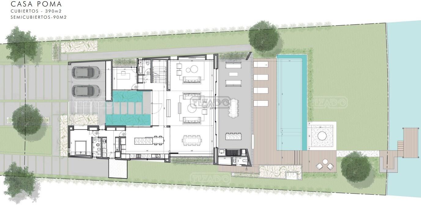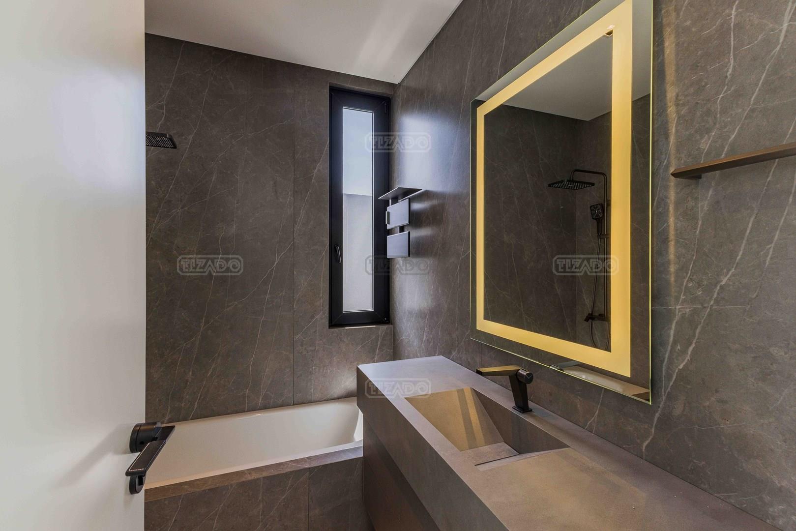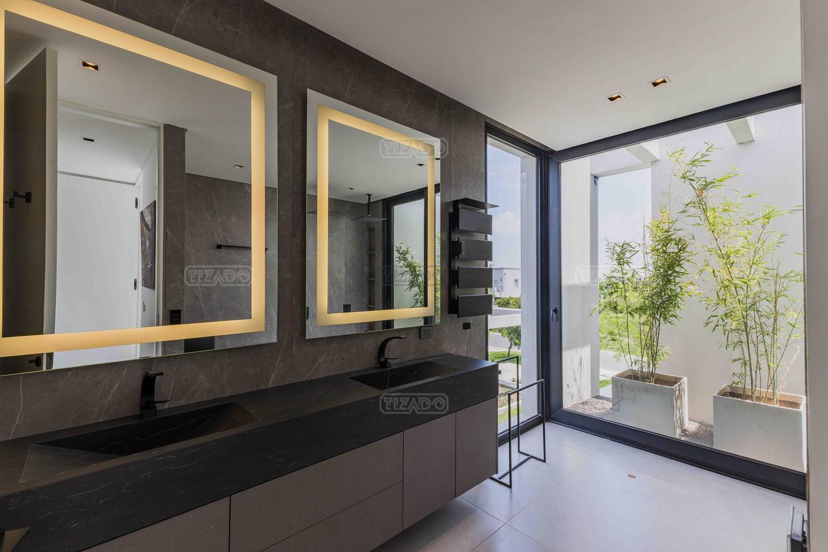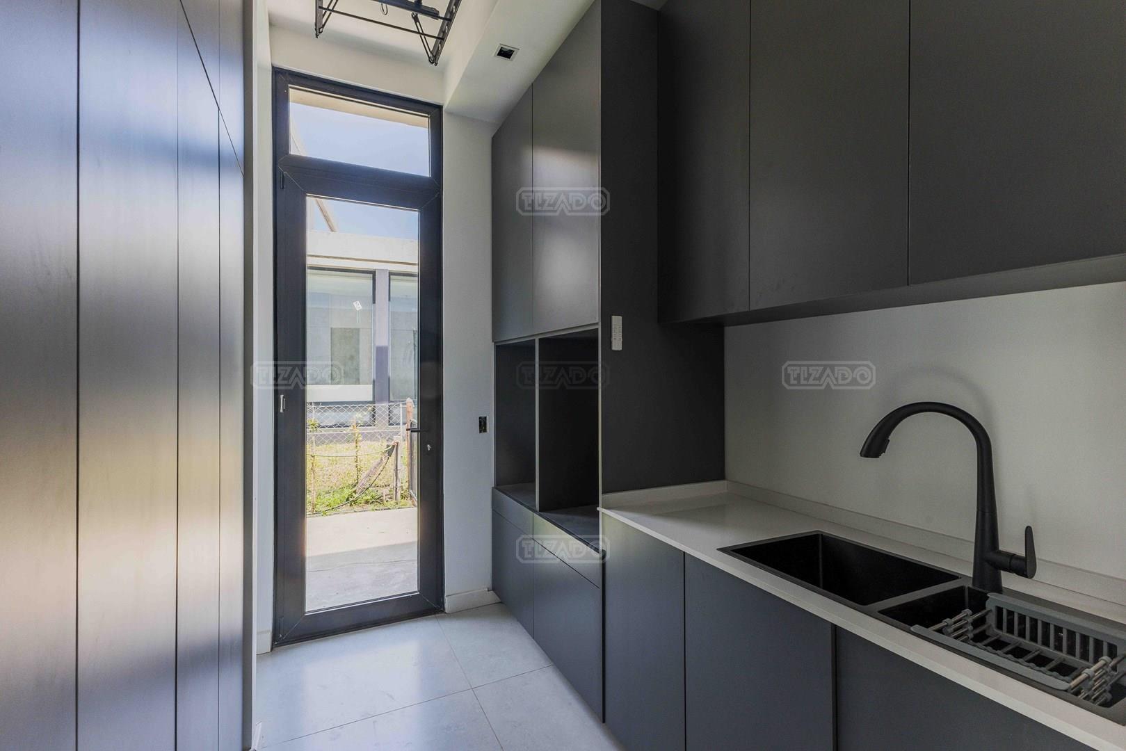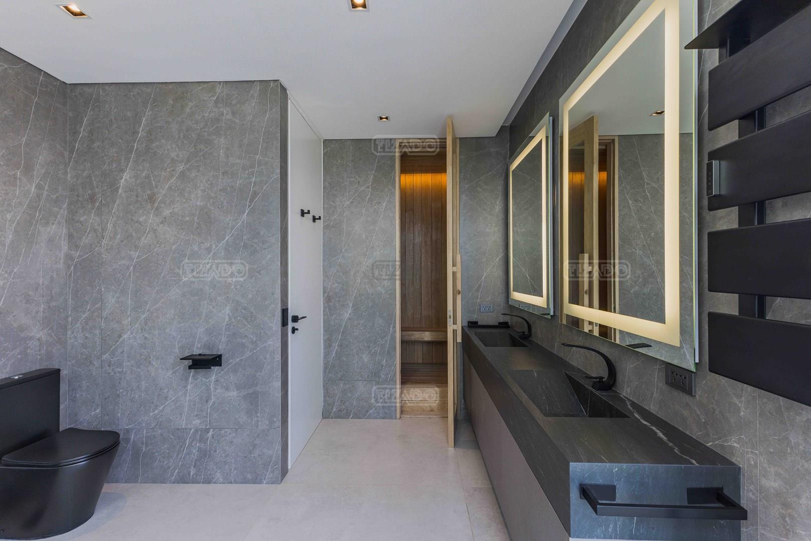 La casa propone una llegada escénica: hall vidriado, estanque y puerta de 7 m con la laguna en primer plano. Un area social (Living y comedor ) con 12.7 m de abertura total hacia galería con sector parrilla con gran isla, y el sector sala de estar con fogonero. Cocina de autor con isla. En PB: dormitorio suite y escritorio en suite, bodega y toilette. Lavadero inteligente con tender automático y Laundry Jet. En PA: playroom y 2º escritorio; 3 suites (dos con terraza) y master con terraza a la laguna, vestidor con luz natural y baño spa con doble ducha y sauna. Afuera, pileta con borde infinito y playa húmeda (12,70 × 3,40), baño y ducha exteriores, jardín con riego e iluminación. Cochera cubierta x2 y espacio guardacoches para 4 vehiculos mas. Operación: Venta Tipo: Casa Ubicación: Marinas – Puertos, Escobar (GBA Norte) Ambientes: 7 o más Dormitorios: 5 (en suite) Baños: 6 + toilette + baño exterior de pileta Cocheras: 2 cubiertas , 4 descubiertas Disposición: Fondo a laguna central con vista infinita Pileta: Sí (infinita + playa húmeda) Terraza/Balcón: Sí (cada dormitorio cuenta con su terraza propia) Calefacción/Climatización: Losa a gas, A/A (varios), domótica Dependencia en suite PB Escritorio en suite PB A estrenar Amenities del barrio: Seguridad 24hs, lagunas navegables, naútica, club deportivo, polo gastronomico y comercial, escuelas y rapido acceso a ruta 25 y a Panamericana. KM45 Detalles constructivos Open Concept. Abierto hacia la galería con aberturas empotradas y sin columnas 12.70 mts de vista abierta hacia la laguna. Sala de máquinas. Galeria con losa radiante Aberturas de PVC de aluminio negro con DVH. Instalacion Domotica. Piso: Laminas de Porcelanato color Gris hueso de 1,60mts x 1,60mts Muebles hechos con melamina Egger importada de Suiza. Herrajes importados. Accesorios de muebles de cocina importados. 2 hornos eléctricos ARISTON empotrables 1 horno microondas AEG alemán Bacha de cocina de acero negro importada automatica ultima generacion Isla y mesada en marmol con anafe de 90 cmts de 6 hornallas y extractor extraible automatico Artefactos de iluminación de última tecnología. Parrilla, horno, mesacada con bacha importada con canilla embutida Playa al lago 2 Calderas BAXI LUNA para calefacción . 1 termotanque alta recuperación 160 lts. Bomba Grundfos . 2 colectores de losa radiante. Computadora y sistema de riego automático Hunter/Raindeer Estructura de Hormigón H30. Vigas de hormigón H30. Columnas de hormigón H30. Tabiques de Hormigón Visto H30. Altura a cielo raso : 3 mts Altura a cielo raso Living 1 :doble altura 7 mts. Coordiná recorrido ahora: la mejor vista de Marinas te está esperando. The house offers a dramatic arrival: a glazed hall, reflecting pond, and a 7-meter glass door framing the lagoon. Social area (living & dining): a total opening of 12.7 m to the covered gallery—BBQ/grill zone with a large island—and a lounge area with a fire pit. Signature kitchen with island. Ground floor: en-suite bedroom and an en-suite office, wine cellar, and powder room. Smart laundry with automatic drying rack and Laundry Jet. Upper floor: playroom and a second office; 3 suites (two with private terraces) and a primary suite with terrace over the lagoon, walk-in closet with natural light, and spa bathroom with double shower and sauna. Outdoors: infinity pool with sun shelf (12.70 × 3.40 m), outdoor bathroom and shower, landscaped garden with irrigation and lighting. Two covered parking spaces plus room to park four more vehicles. Operation: Sale Property type: House Location: Marinas – Puertos, Escobar (Northern GBA) Rooms: 7 or more Bedrooms: 5 (all en-suite) Bathrooms: 6 + powder room + outdoor pool bathroom Parking: 2 covered, 4 uncovered Lot orientation: Central lagoon backline with unobstructed view Pool: Yes (infinity + sun shelf) Terraces/Balconies: Yes (each bedroom has its own terrace) Heating/AC: Gas radiant slab heating, multiple A/C units, home automation Service quarters: En-suite on ground floor Office: En-suite office on ground floor Condition: Brand-new Neighborhood amenities: 24/7 security, navigable lagoons, nautical activities, sports club, dining & retail hub, schools, and quick access to Route 25 and Pan-American Highway (Km 45) Construction details Open concept. Seamless connection to the gallery with recessed, column-free openings and 12.70 m of unobstructed lagoon view. Mechanical room. Gallery with radiant floor heating. Black aluminum/PVC double-glazed windows (DVH). Home automation system. Flooring: 160 × 160 cm bone-gray porcelain slabs. Cabinetry: custom, with Egger laminated boards (imported). Imported hardware and kitchen accessories. Appliances: two built-in ARISTON electric ovens; one AEG microwave (German). Kitchen sink: imported black steel, latest-generation with automatic features. Counters & island: marble; 90 cm cooktop with 6 burners and automatic retractable downdraft extractor. Lighting: state-of-the-art fixtures. Outdoor kitchen (gallery): built-in grill, oven, countertop with imported sink and recessed faucet. Lakefront “beach” access. Heating & hot water: two BAXI LUNA boilers (heating) + 160 L high-recovery water heater. Pump: Grundfos. Radiant system: two manifold collectors. Irrigation: controller and automatic system Hunter/Rain Bird. Structure: reinforced concrete H30 (beams, columns, exposed concrete walls). Ceiling heights: 3 m standard; double-height living at 7 m. Schedule a private tour now—Marinas’ finest view is waiting for you.