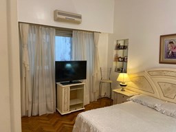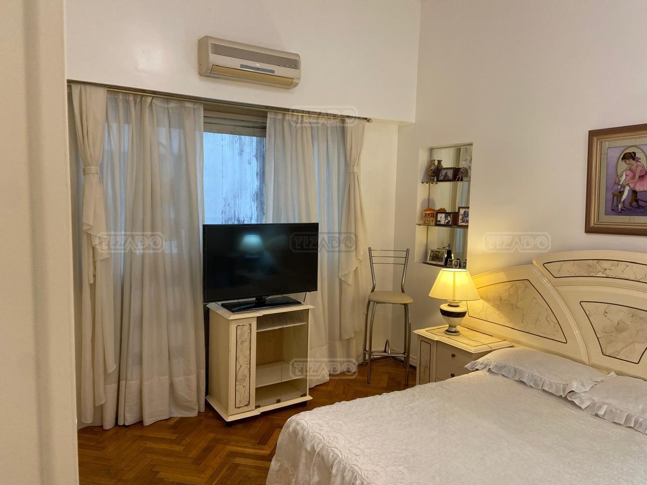 Semipiso de 4 ambientes con dependencias al contrafrente en una ubicación de privilegio sobre la calle Ayacucho entre Peña y Juncal y en el medio de las Avenidas Santa Fe, Callao y Las Heras, con muchas áreas de interés: centros comerciales, colegios, áreas verdes y múltiples medios de transporte. Departamento muy luminoso para ser primer piso de arquitectura clásica que ofrece espacios muy amplios. Edificio de estilo muy bien mantenido con doble puerta de ingreso de madera y amplio hall de entrada. Encargado permanente. La unidad cuenta con: Puerta de ingreso principal con palier semiprivado y entrada de servicio. Living con ventana al contrafrente y split. Comedor o tercer dormitorio si se lo quiere volver a cerrar con ventana al contrafrente y slipt. Dormitorio principal con ventana, split y placares de piso a techo. Dormitorio secundario con ventana al contrafrente. Cocina independiente con espacio para colocar una mesa y sillas para desayunar. Baño principal completo con ventilación natural. Toilette. Cocina y baños en muy buen estado por lo que no requieren obra para poder mudarse. La dependencia se transformó en un espacio amplio que puede ser usado como comedor diario, escritorio u oficina. Baño de servicio. Lavadero independiente. Calefacción por radiadores y agua caliente central.
