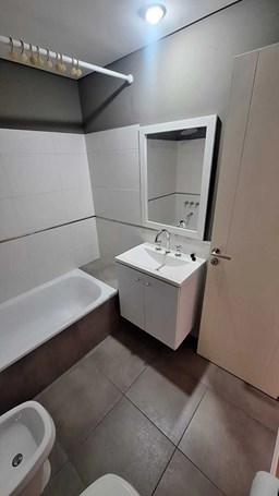 Departamento de 2 ambientes con cochera en contrafrente ubicado en un muy buen edificio entre bloques en San Fernando. Con acceso a líneas de colectivo que conectan la zona norte con CABA. Cercanía al ramal Tigre de la autopista Panamericana. A pocas cuadras de la estación del tren Mitre. A una cuadra del centro comercial de San Fernando (comercios, bancos, clínicas, farmacias). Compuesto por 1 dormitorio en suite con placard y baño completo. Incluye 1 toilette. Cocina integrada con living comedor, dividida por una barra. Posee balcón francés. Incluye cochera semicubierta. Dispone de servicios de gas, luz y cloacas. Calefacción por estufas con tiro balanceado. Incluye horno y portero eléctrico. Cuenta con servicio de limpieza en áreas comunes. Cochera nro 25 y baulera 8