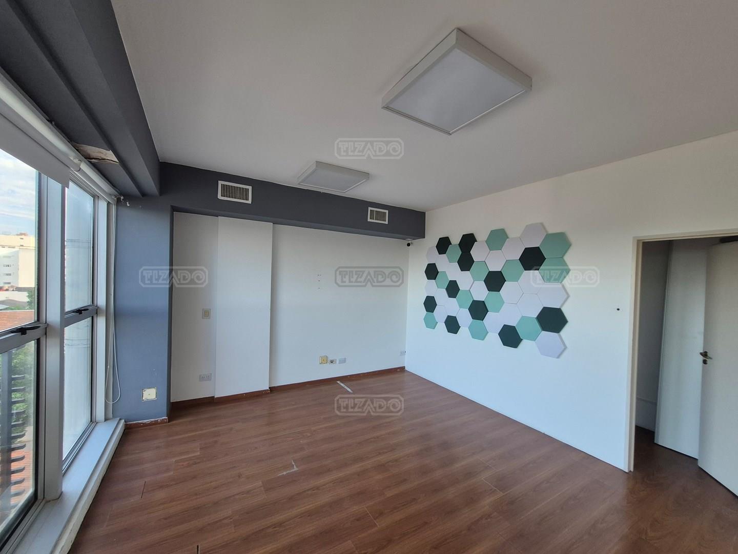 Moderna oficina de 107,25 m cubiertos y 6 m de balcon con deck y vista abierta. La oficina tiene dos baños con ducha y dos kitchenette. Tres despachos cerrados, y dos salas amplias. Pisos flotante y porcelanato. El edificio tiene instalado un sistema de cámaras de seguridad por piso, en los estacionamientos y los accesos tanto por Av Maipú como por el estacionamiento de la calle Córdoba. Cochera cubierta en subsuelo. Condiciones del alquiler: 1 Mes por adelantado - Deposito U$S 3000 - Garantía propietaria y/o Seguro de caución - Ajuste: Trimestral promedio entre ICL e IPC + IVA 21% .Contrato por 24 meses.