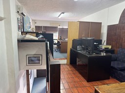 La oficina es una construcción sólida con entrada al frente. Cuenta con oficina en planta baja y entrepiso comunicada por escalera de material. Office cocina chica y baño.Dos aires acondicionados frio/calor. Rejas. Espacio para marquesina al frente.